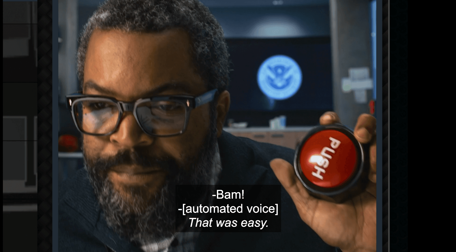 Radford hits this knockoff “That Was Easy” button three times in the first 12 minutes and then completely forgets it exists. It doesn’t even say “EASY” on the button like it should. It just says “PUSH,” like a bootleg version you’d find in a dollar store toy aisle. I was initially pissed that they used the button at all, let alone a knockoff one. It was easy to jump to irate when they button-mashed it three times early and never again. Why use it at all? It should go down as the worst use of the “That Was Easy” button gag in cinema history.