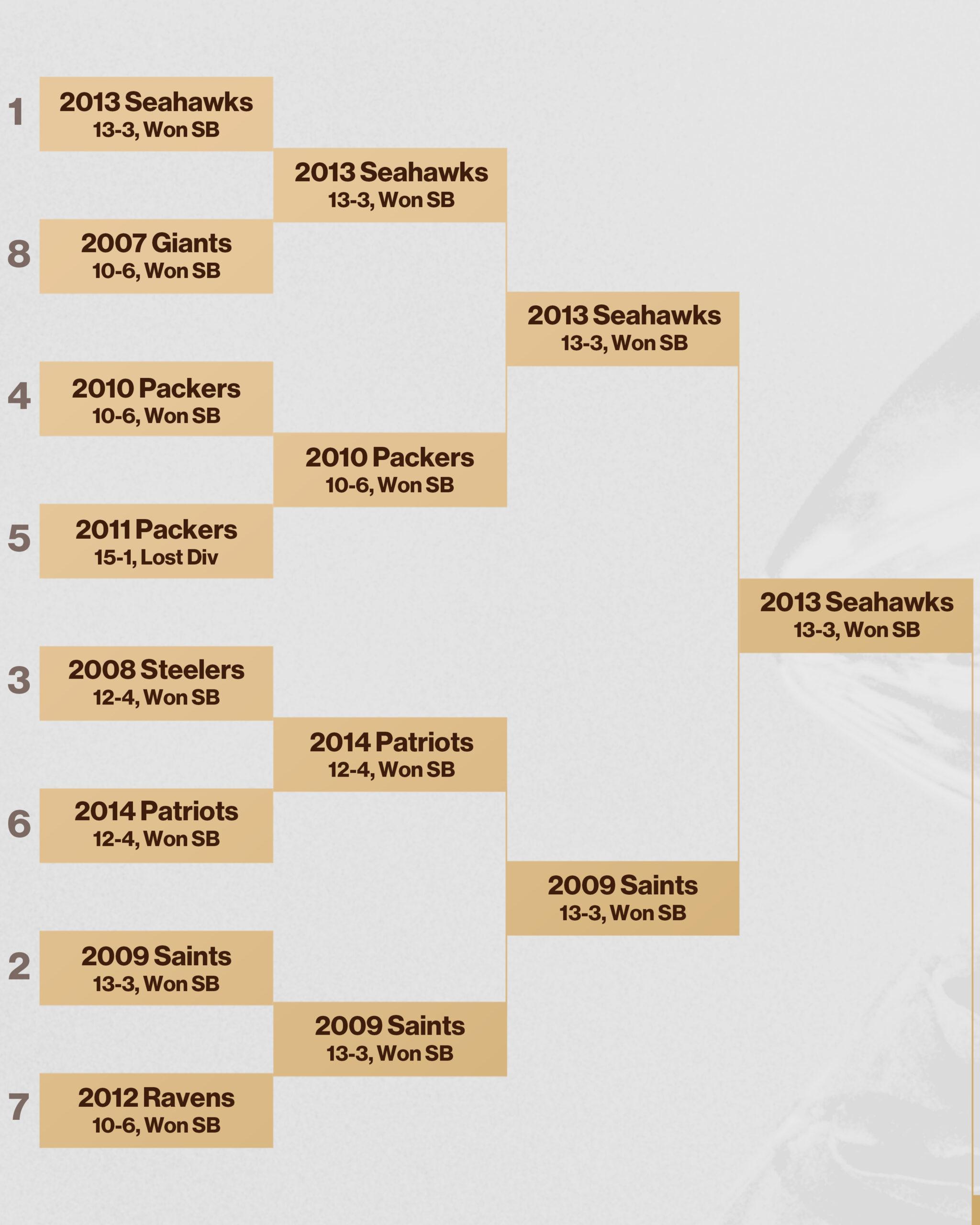 The Best NFL Team of the Quarter Century Bracket: The Final Four