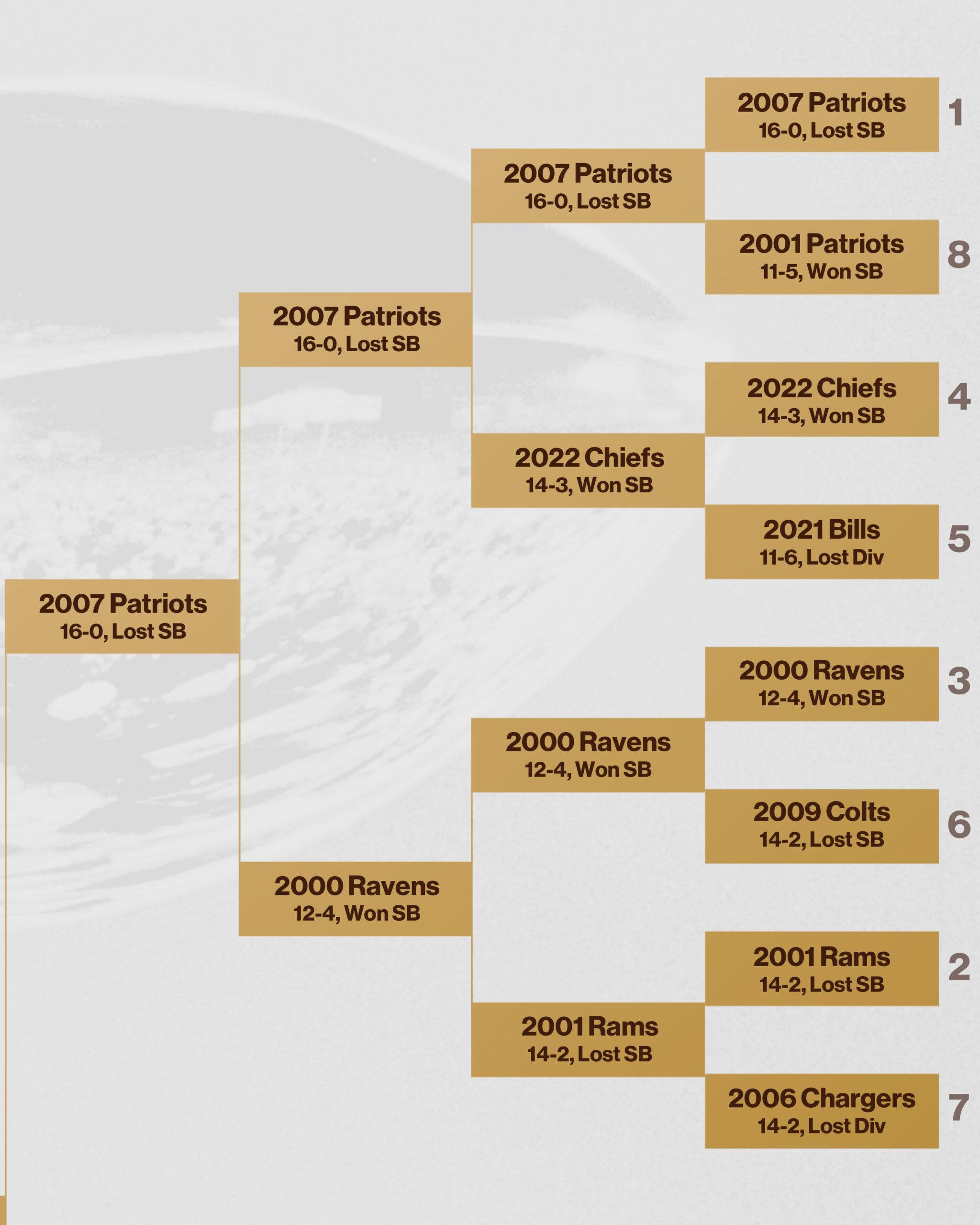 (1) 2007 New England Patriots vs. (1) 2019 Kansas City Chiefs