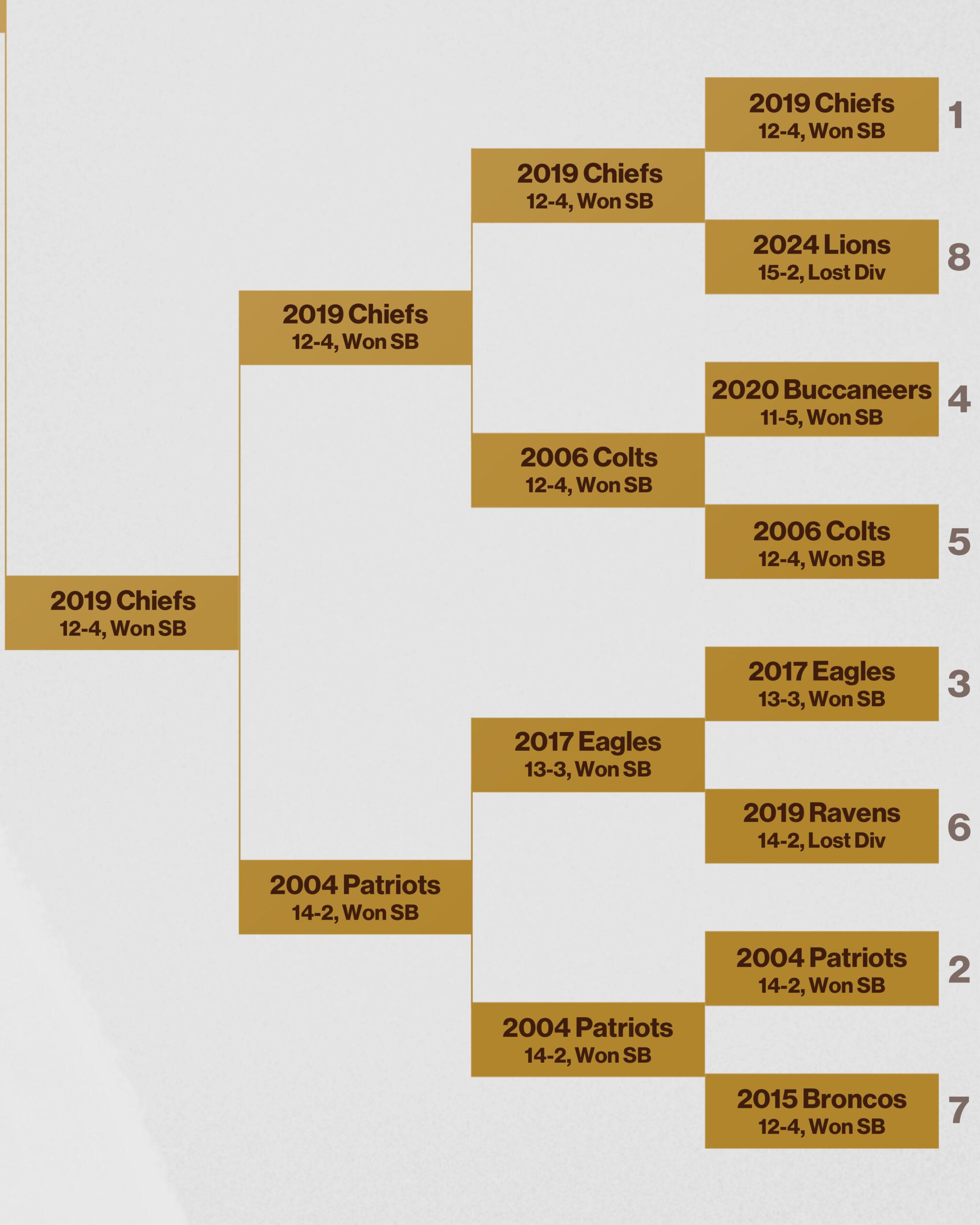 But maybe it comes down to rings for you. The 2019 Chiefs earned theirs; the 2007 Patriots fell short. Sports is a results-oriented business, and Kansas City’s Super Bowl win may be the result needed to push them forward in this bracket as well. It’s up to you to decide.
