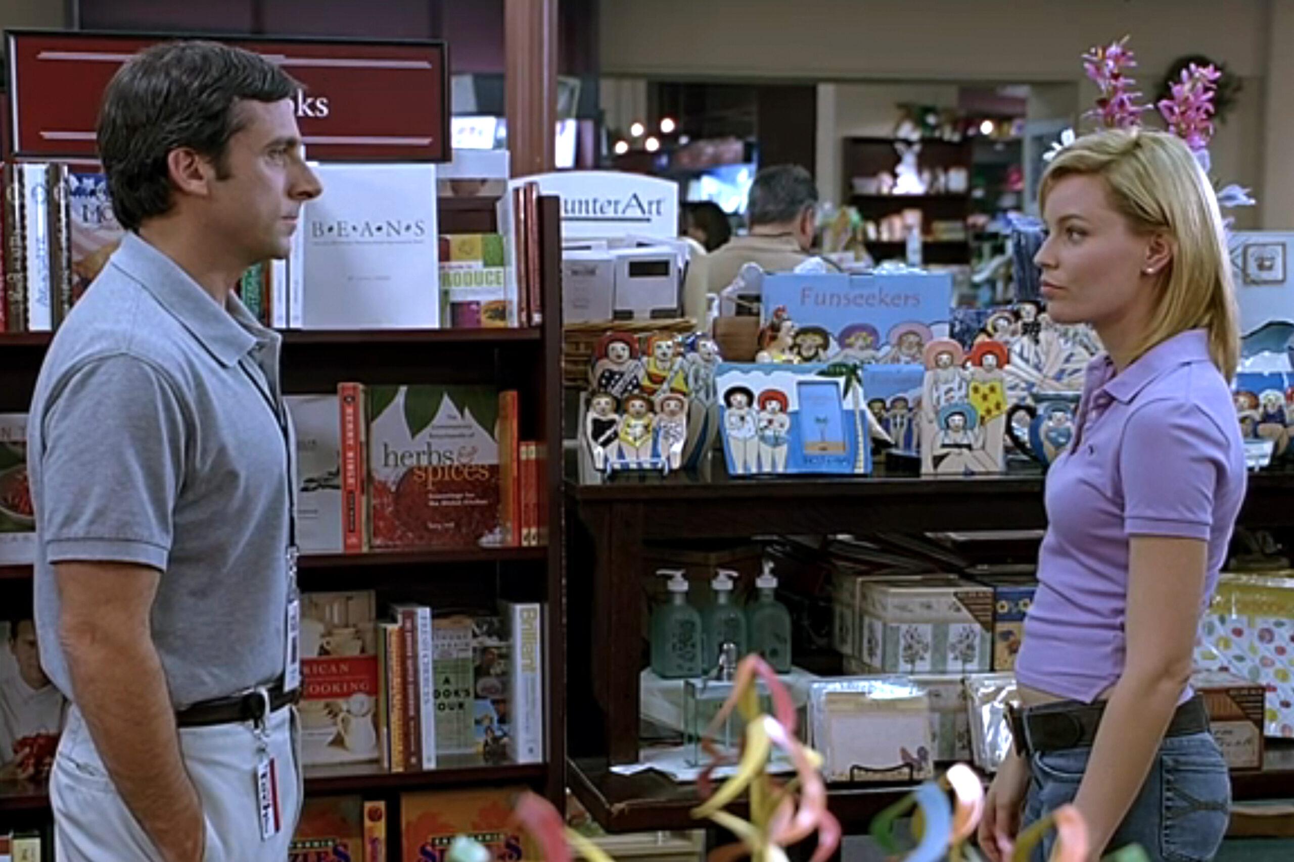 That summer, the pair banged out a script that would change both of their careers. Released 20 years ago this week, The 40-Year-Old Virgin fleshed out Carell’s sketch into a deeply funny and earnest exploration of American masculinity by following the escapades of Andy Stitzer, an innocent and sexually inexperienced electronics store stockroom manager. As he searches for a relationship, he must confront his isolated lifestyle, his sexual anxieties, and the immature coworkers eager to get him laid. “I had an idea of what I was going for,” Apatow says. “Can you do the high comedy of Jim Carrey and get the heartfelt character comedy of Jim Brooks and Cameron Crowe in the same movie?”