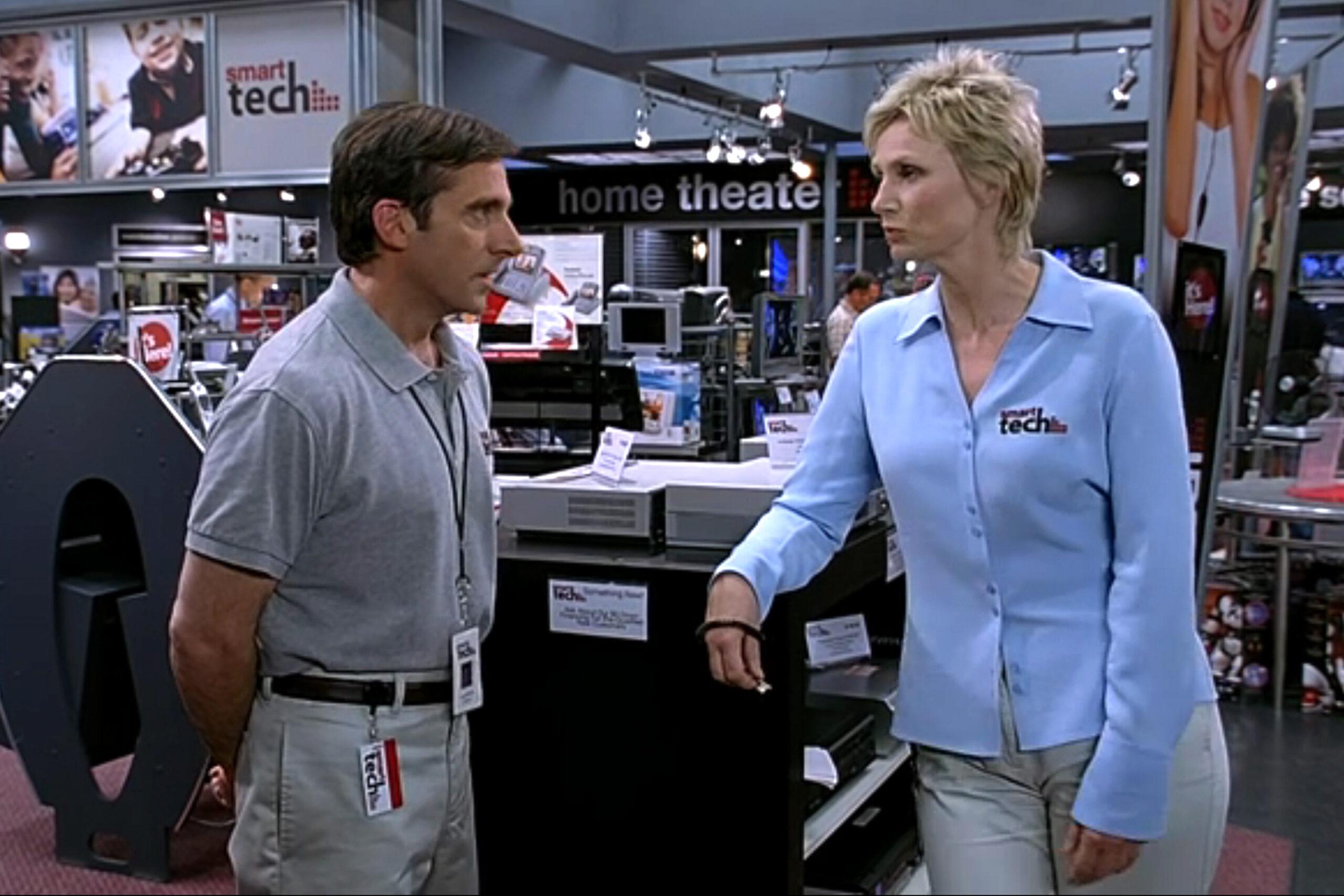 Jane Lynch (Paula): Steve’s wife, Nancy, said something to Judd: “You've got all these guys in your film. Why don't you read Jane for the store manager?” I think the audition was all improv. I worked with Steve. We were at Second City at the same time. We did the scene when I offered to take his virginity. “Look, I'm happy to be of service …”