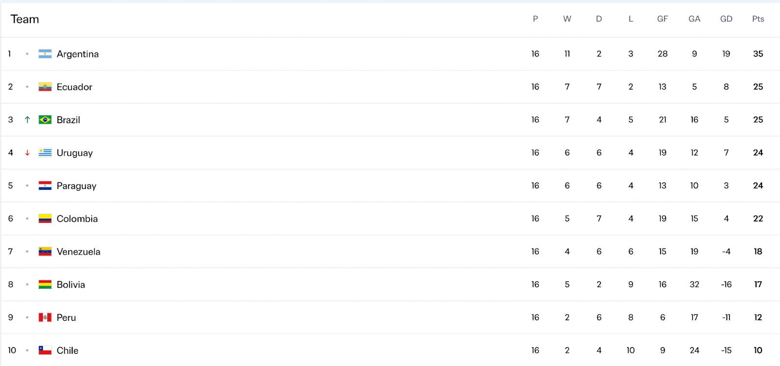 CONMEBOL will be the second confederation, after tiny Oceania, to complete its qualifying process next month. Ecuador, Brazil, and Argentina have already clinched their spots, and Uruguay and Paraguay are near certain to qualify as they each need just one more point from two matches.