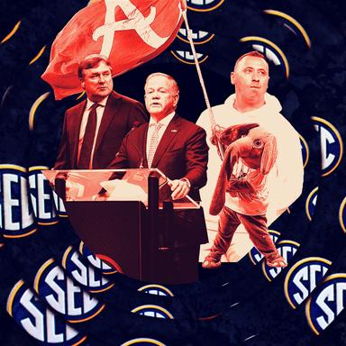 For a moment, everything is fine. Normal, even. It’s a Saturday afternoon in Tuscaloosa, Alabama, and the September air is hot and thick, oppressive and perfect. The grass smells of sweat and beer. On the south end of Bryant-Denny Stadium, young men in coats and ties stand next to young women in sundresses and, for some, high heels. All together, they belt out the final verse of “Dixieland Delight,” gleefully shouting the lyrics that Bama fans have added for generations.