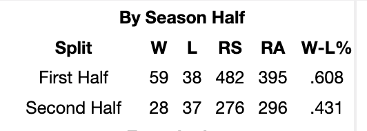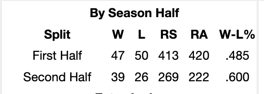 OK, so the assignment is “favorite story line for the MLB playoffs,” and I’m the Tigers guy around here, so let me just pop over to Baseball Reference for some research. But before I do that, let me revel in the magic that was the end of last season, which culminated in a dominant 31-13 stretch that captivated the sport. I’m not the biggest stats expert, but this here split looks pretty tasty to me: