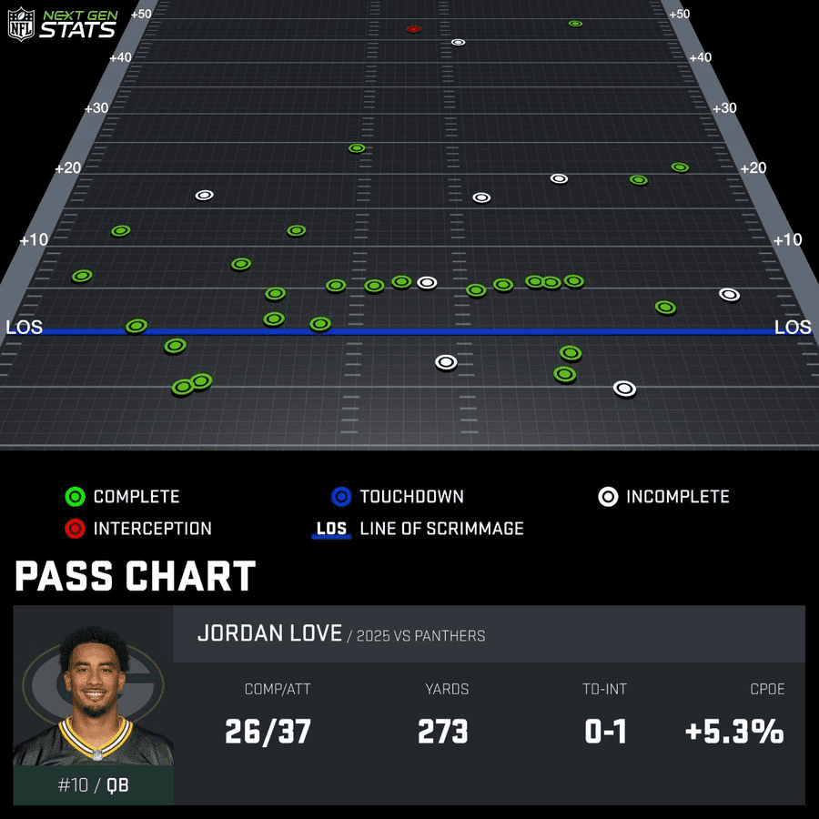 While Detroit is surely kicking itself after giving away a home game to a division rival, the Packers have to be feeling even worse after losing an eyesore of a game to the Panthers, 16-13. Favored by 12.5 points, the Packers were the second-biggest favorites of the week. You wouldn’t have known it based on how Green Bay coach Matt LaFleur called the passing game. There were a lot of horizontal throws for Jordan Love, including seven passes that didn’t cross the line of scrimmage.