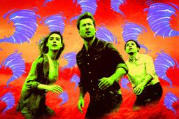 Instead, Powell has attached himself to franchises that feel less stale; perhaps, in part, because they hadn’t already been revived in the 21st century. Nobody would argue that Powell is competing for the lead with Cruise in Maverick, but as the cocky, combative pilot with the call sign Hangman—because he’ll leave his wingman out to dry—he’s got the most satisfying arc. After Powell successfully campaigned for the character to be rewritten, it ends up being Hangman who checks his ego at the door and saves Maverick in the film’s climax. Powell undergoes a similar trajectory as the colead in Twisters. His character, Tyler Owens, a YouTuber fashioning himself as the “Tornado Wrangler,” appears shamelessly opportunistic, using natural disasters for internet clout. But then we discover that Owens gives back to the affected communities—in classic Powell fashion, behind all his character’s posturing is a heart of gold. (It doesn’t hurt that he looks great in a wet T-shirt, either.)