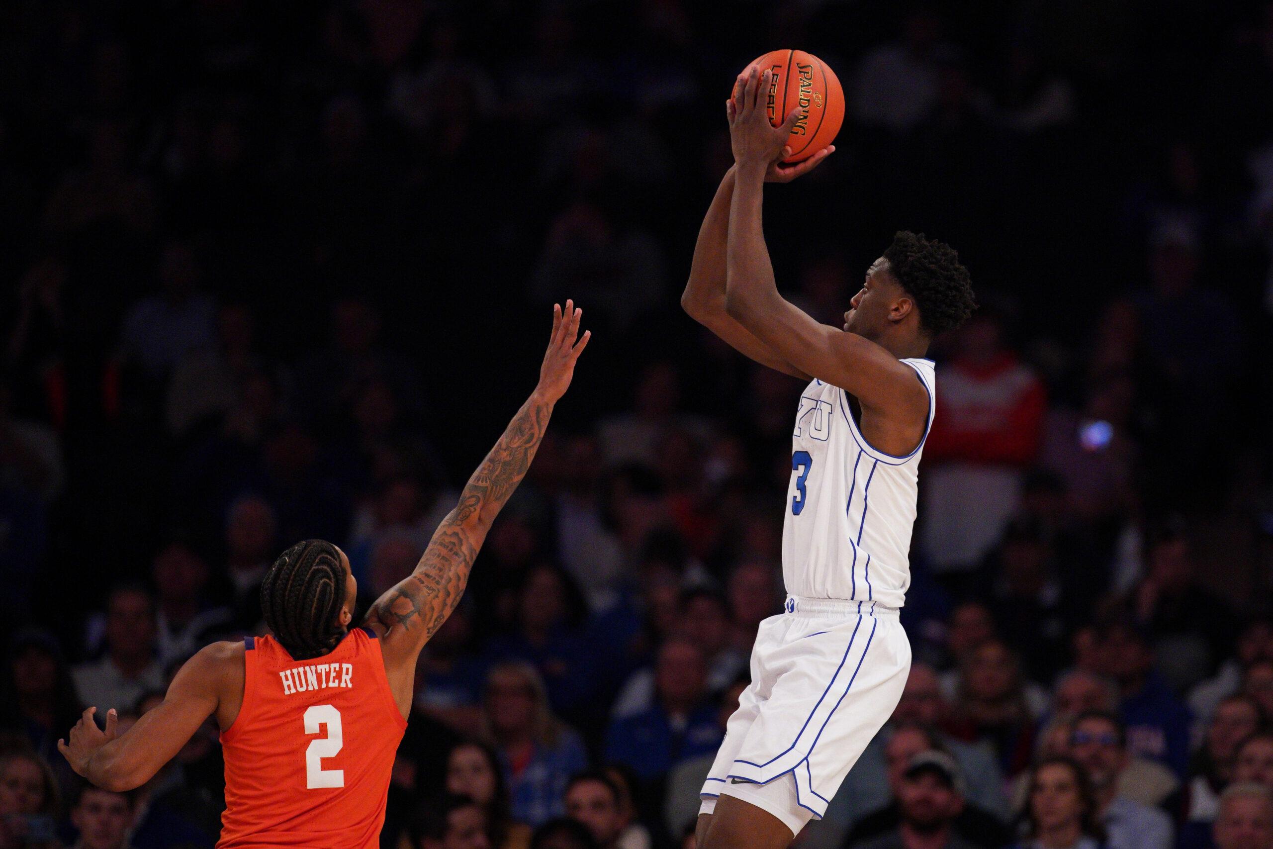 If that sounds a bit like Shai Gilgeous-Alexander, that’s by design—there’s no one Dybantsa has studied more in the past year than SGA. But where Shai developed his style to make up for a lack of size and overt athleticism in his youth, Dybantsa is applying those same tenets from a place of physical surplus. He is already one of the best slashers in college basketball, and the amount of attention he draws with the ball in his hands has allowed him to flash his massive strides as a passer. He’s making the right reads when drawing multiple defenders and has shown off some flair with crosscourt passes that make full use of his height. As he gets more and more comfortable creating for others with a live dribble, we could be looking at a 6-foot-9 primary pick-and-roll initiator down the road. For now, it’s fair to wonder how Dybantsa might adjust to playing a less ball-dominant role at the next level should he find his way onto a team that won’t overburden him to start. The bulk of Dybantsa’s scoring possessions at BYU come off drives to the rim and contested midrange shots—what might he look like in an offense that granted him easier opportunities off the ball?
