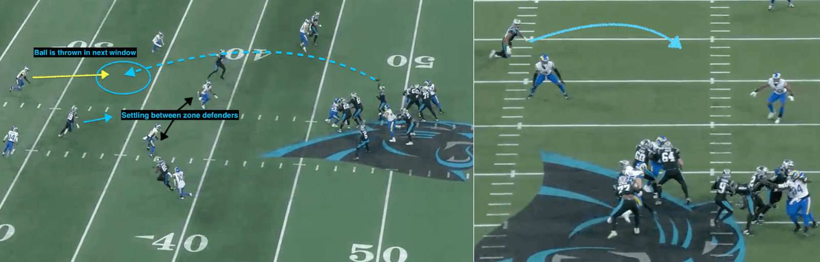 But the all-22 angle shows that Young was late making a decision and missed his receiver settling down between two zone defenders.