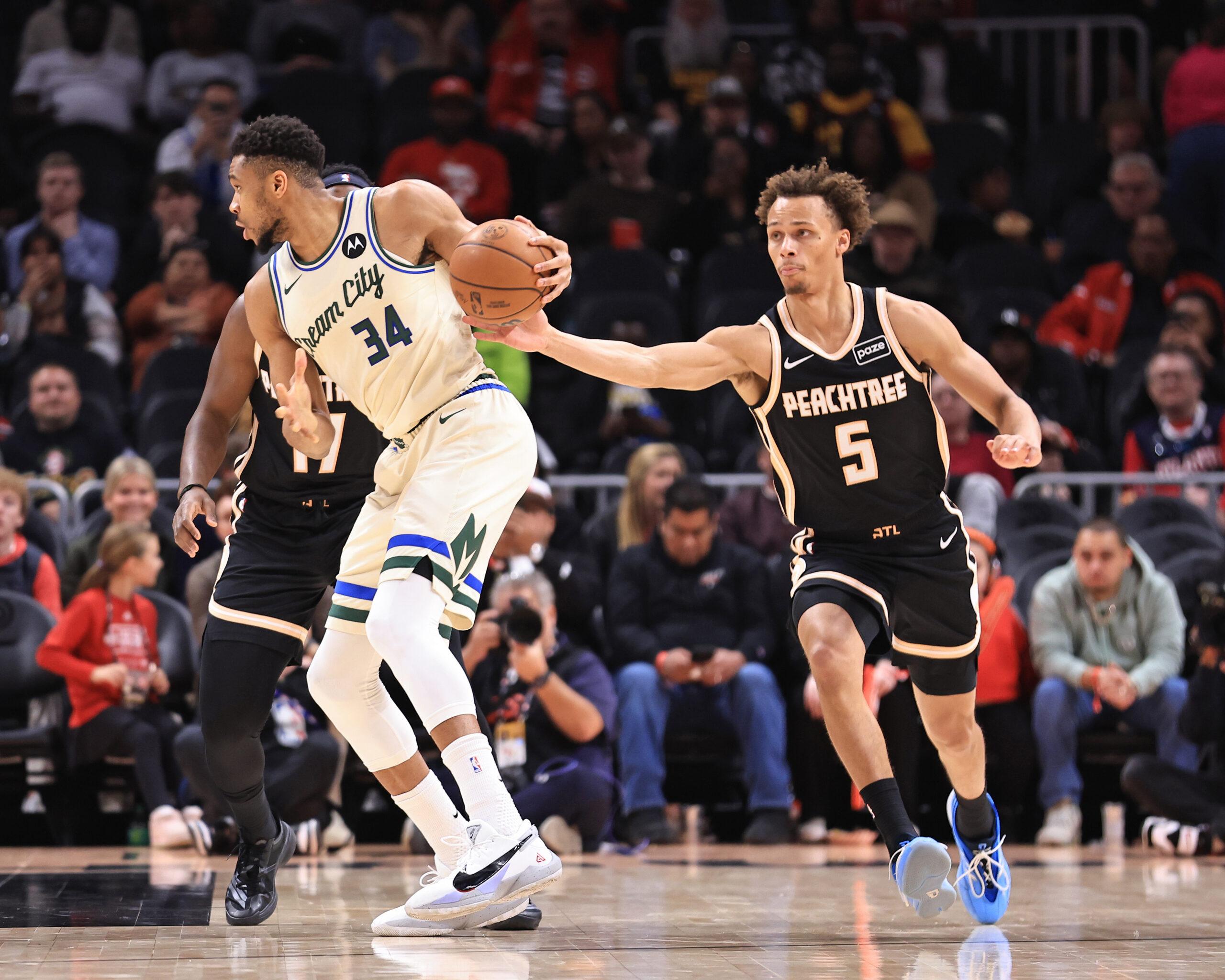 Dyson Daniels goes for a steal against Giannis