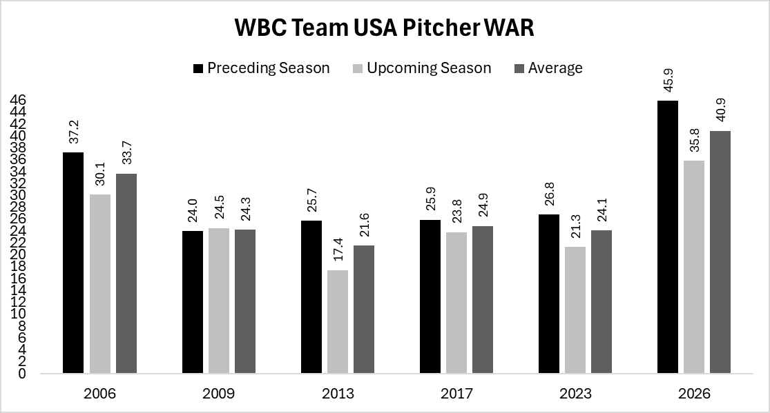 Top Four Starting Pitchers on Each WBC Team USA Squad (Avg. of Past and Projected WAR)