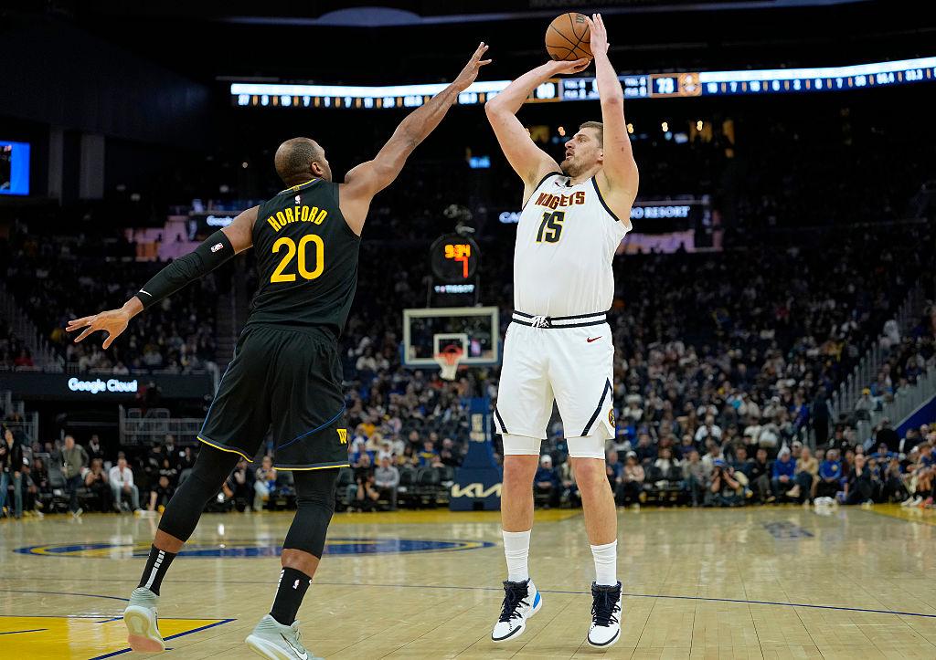 Nikola Jokic shoots over Al Horford in the second half of the game on February 22