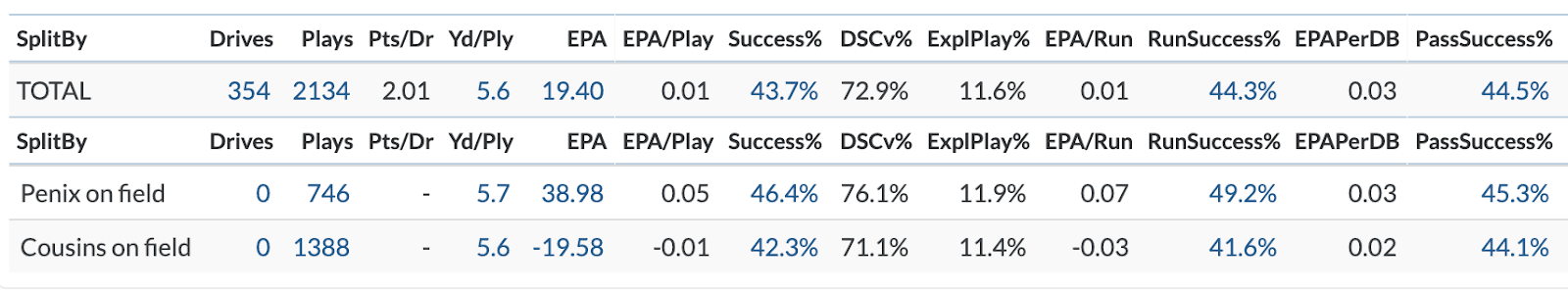 Kirk Cousins will be back on the open market this offseason, as the Falcons plan on releasing the veteran quarterback on the first day of the new league year. Cousins has already been linked with his former team, along with other vets like Murray, Smith, and even Derek Carr, who is reportedly planning on unretiring. Cousins is a familiar option and, based on his career track record, could be viewed as the safest option. But I’m not sure that Cousins is the floor raiser he once was. He didn’t do well in Atlanta in either of his two seasons. In fact, his presence on the field seemed to lower the team’s floor in comparison with Michael Penix Jr., who doesn’t set a high bar to clear.