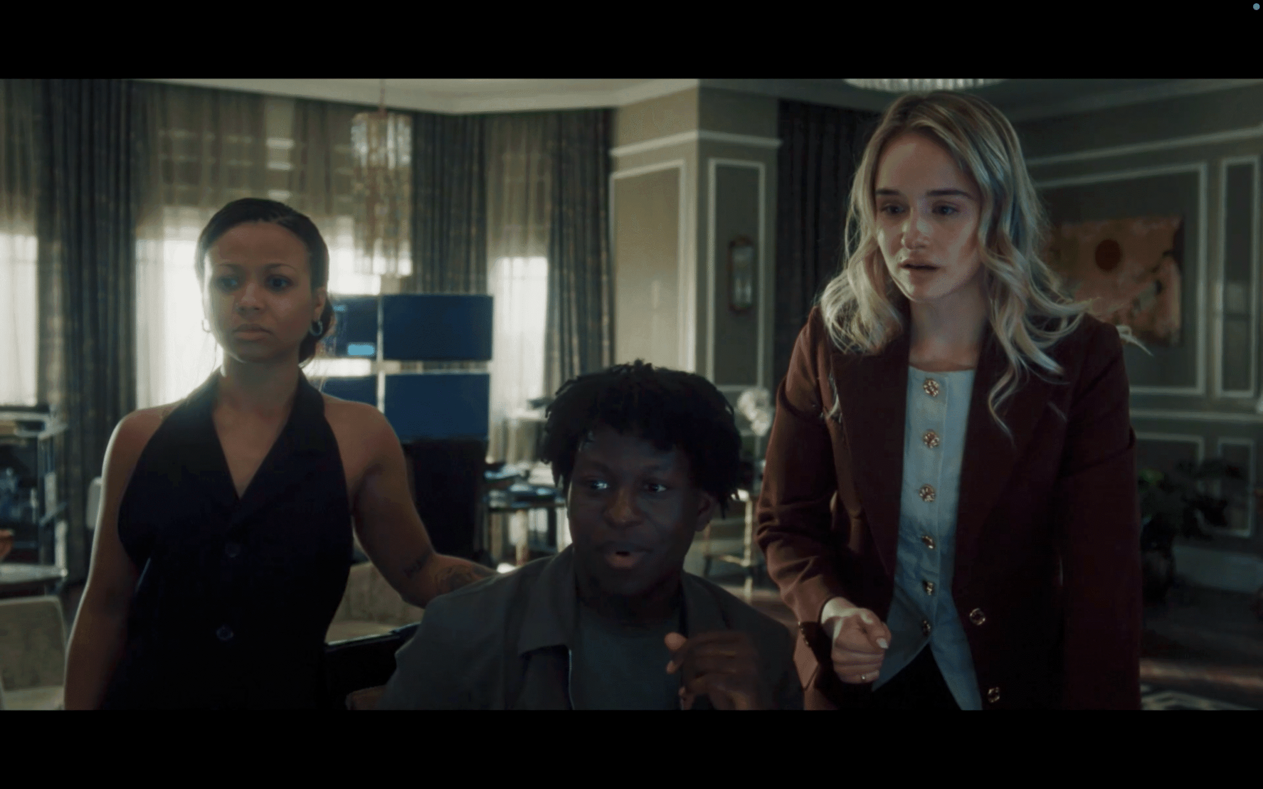 Harper shows Kwabena and Sweetpea their new office space. On the downside, there’s no room service, but on the upside, there is blazing-speed internet and zero pictures of Eric’s twin girls. She gives each a $2 million bonus; Sweetpea cracks that she could’ve made that much selling pictures of her feet online. Harper invites Kwabena to be her plus-one at some event in Paris that Yasmin is orchestrating. When they arrive, they run into Yasmin and Hayley in the lobby, laden with expensive shopping bags. “It’s Paris! Anything could happen!” chirps Yasmin (in a very “C’mon! It’s L.A.!” kinda way).