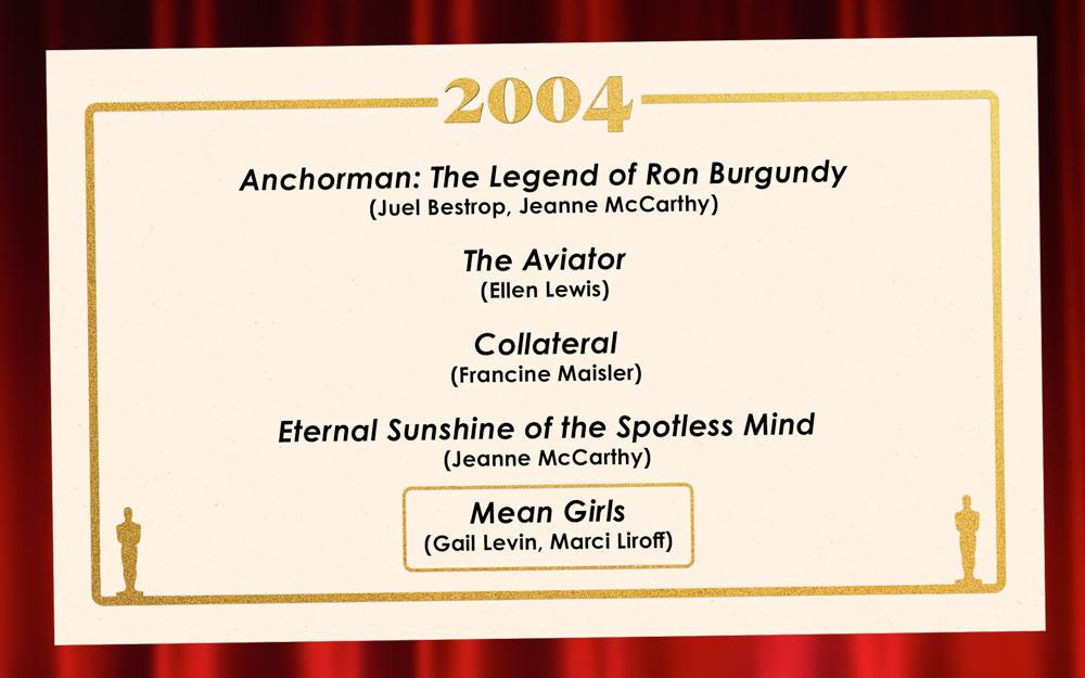 That said, this was a hard-fought victory. Mean Girls spent basically the entire voting process neck and neck with Eternal Sunshine, until one voter pushed it over the edge to take the win. While the process ultimately yielded this batch of nominees and winner, this was one of the years with the least agreement in this entire exercise, with 10 movies ultimately chosen to win by our body of 13 voters. Just missing out on nominations were 13 Going on 30, Closer, Dogville, Million Dollar Baby, Shaun of the Dead, and Sideways. —Kyle Wilson