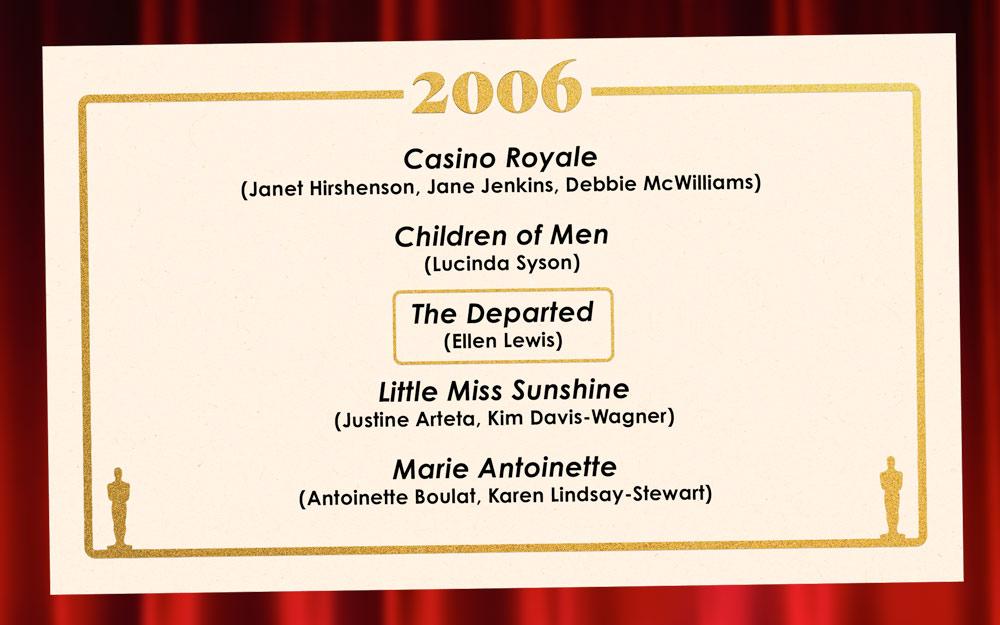 Still, there was no doubt The Departed would prevail here. Casino Royale and Little Miss Sunshine put up a good fight, but “Jack Nicholson in a Martin Scorsese movie” is the Usain Bolt of casting Oscar elevator pitches. It's never going to lose. Children of Men fucking rules, though. —Brian Phillips