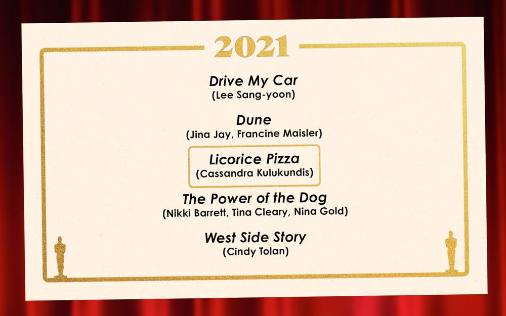 The two films that trailed closest behind Minari in our vote were Da 5 Bloods and Nomadland. Da 5 Bloods had some terrific performances, including Delroy Lindo and Chadwick Boseman in what was one of his final film appearances. Nomadland, the year’s Best Picture winner, was led by Frances McDormand’s Oscar-winning Best Actress performance and featured a supporting cast primarily made up of real-life nomads playing fictionalized versions of themselves. Either film would’ve been a worthy winner in our casting race, but Minari—much like the film’s child star Alan Kim—stole our hearts this time. —Chin