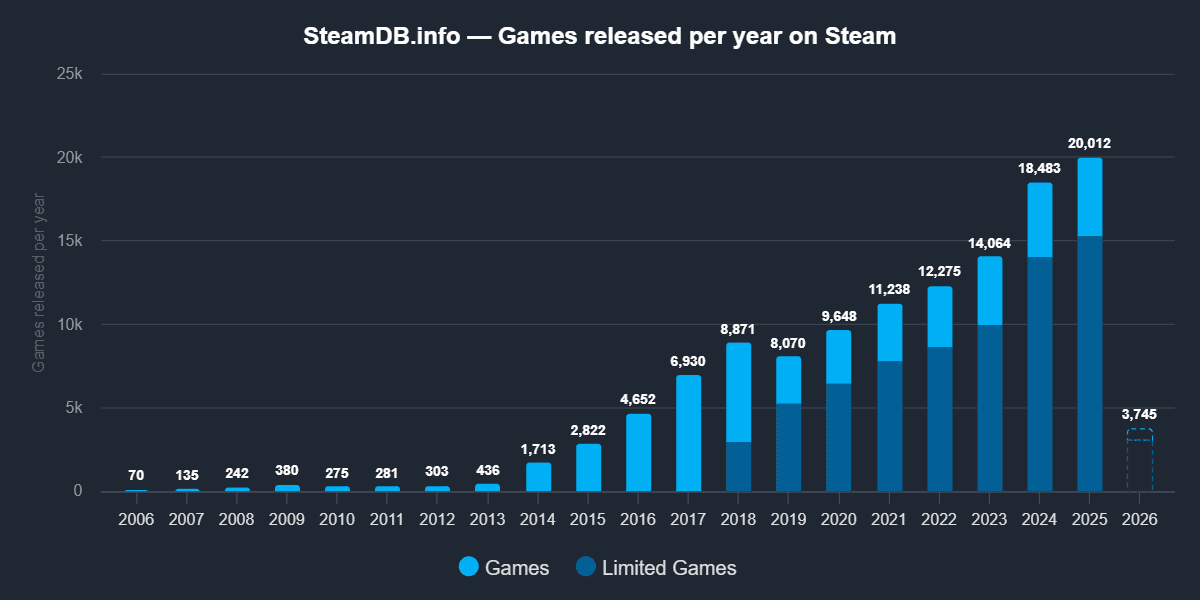 One of the stiffest challenges confronting Highguard—and, for that matter, any new video game—is that there are so many other games. More than 20,000 were released on Steam alone last year. To make matters worse for new arrivals, most consumers are content to keep playing the hits of previous years. On PlayStation and Xbox, the five most-played games of 2025 were unchanged from 2024. Only 14 percent of total playtime on Steam in 2025 was devoted to titles released last year, and 40 percent went to games released eight or more years earlier.