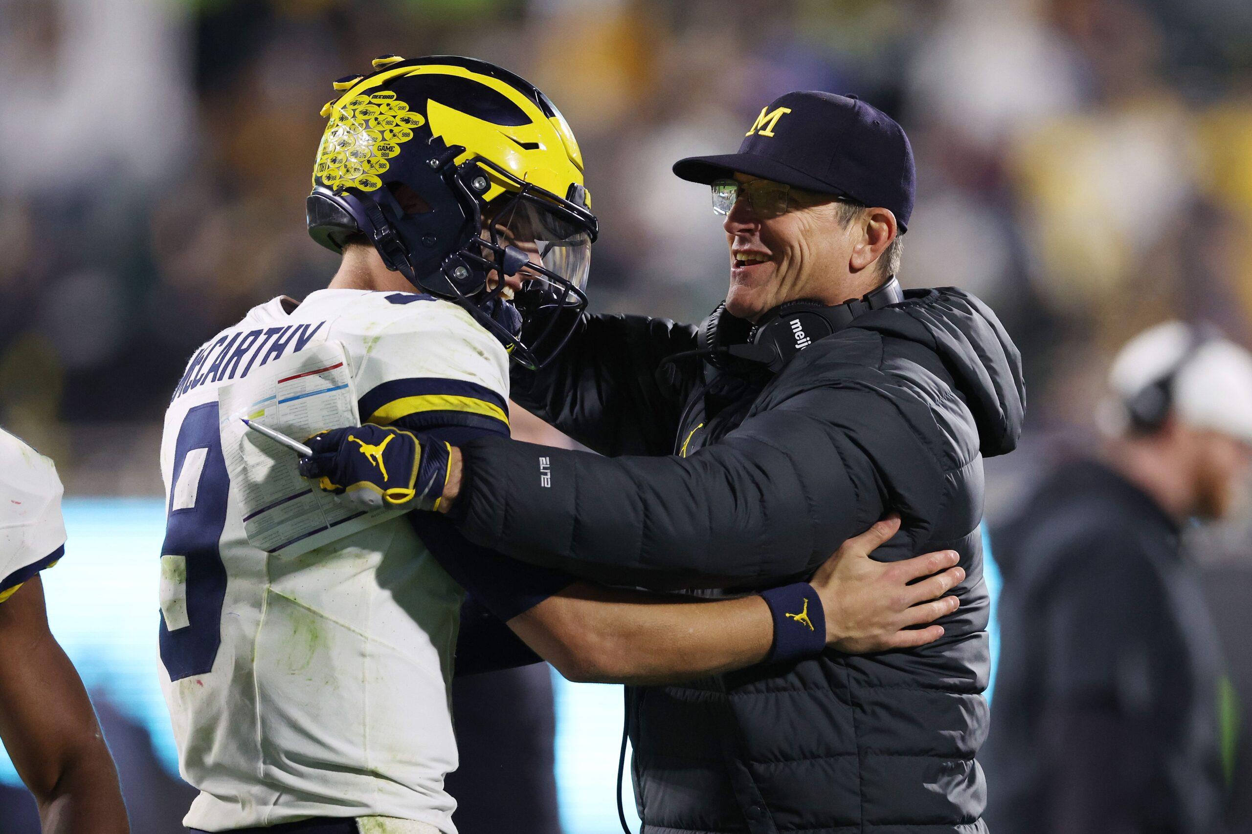 Michigan is a trailblazer in the sport: champion of the inaugural Rose Bowl in 1902, introducer of the two-platoon system with separate offensive and defensive players in 1945, and winner of more games than anyone else in college football history. Last Saturday, Michigan became the first program to win 1,000 games, a milestone that must have been excruciating for Harbaugh—a Michigan Man if there ever was one—to miss. This is the program of 11 claimed national titles, of Desmond Howard striking the Heisman pose, of Charles Woodson becoming the lone defensive player to win that award, of Fielding Yost and the “point-a-minute” teams, and even of Tom Brady getting his innocuous start.