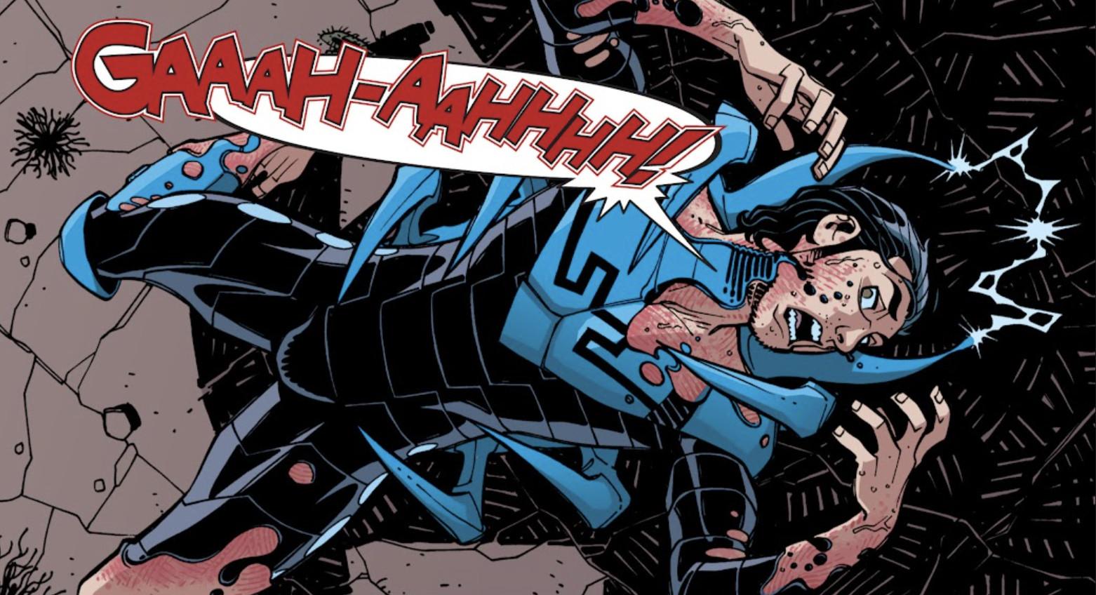 Aside from the extraterrestrial trappings, the most significant change to the new Blue Beetle lore is the Scarab’s reimagining as a semiautonomous technological parasite that communicates with its organic host. In Jaime’s first solo series in 2006, many of the early stories involve him learning how to use the Scarab, where the device came from, and how to navigate his life with his family and as a high schooler with this deadly weapon now attached to his spine at all times. Before Jaime, Garrett would summon the abilities of the Scarab by speaking the magic words “Khaji Da.” But in this modern take on the character, Khaji Da is the name of the Scarab, which begins to adapt to the morals of its host as Jaime adapts to the alien parasite inside him.