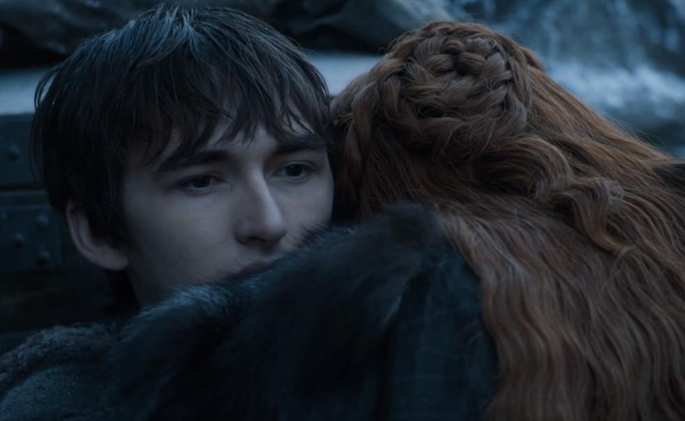 Bran’s ascent to internet stardom started in Season 7, when his reunion with Sansa went a lot less warmly than his sister expected. Expecting a show of filial affection, Sansa instead received the soon-to-be-famous Stare, cryptic comments about being—but also learning from—the Three-Eyed Raven (“It’s difficult to explain”), and a creepy confession that Bran had watched her on her wedding night. Bran’s blank expression while enduring a one-way hug summed up his new in-person presence; as my Ringer colleague Zach Kram put it to me, “Bran’s the only person to go through puberty and lose all his emotions.”