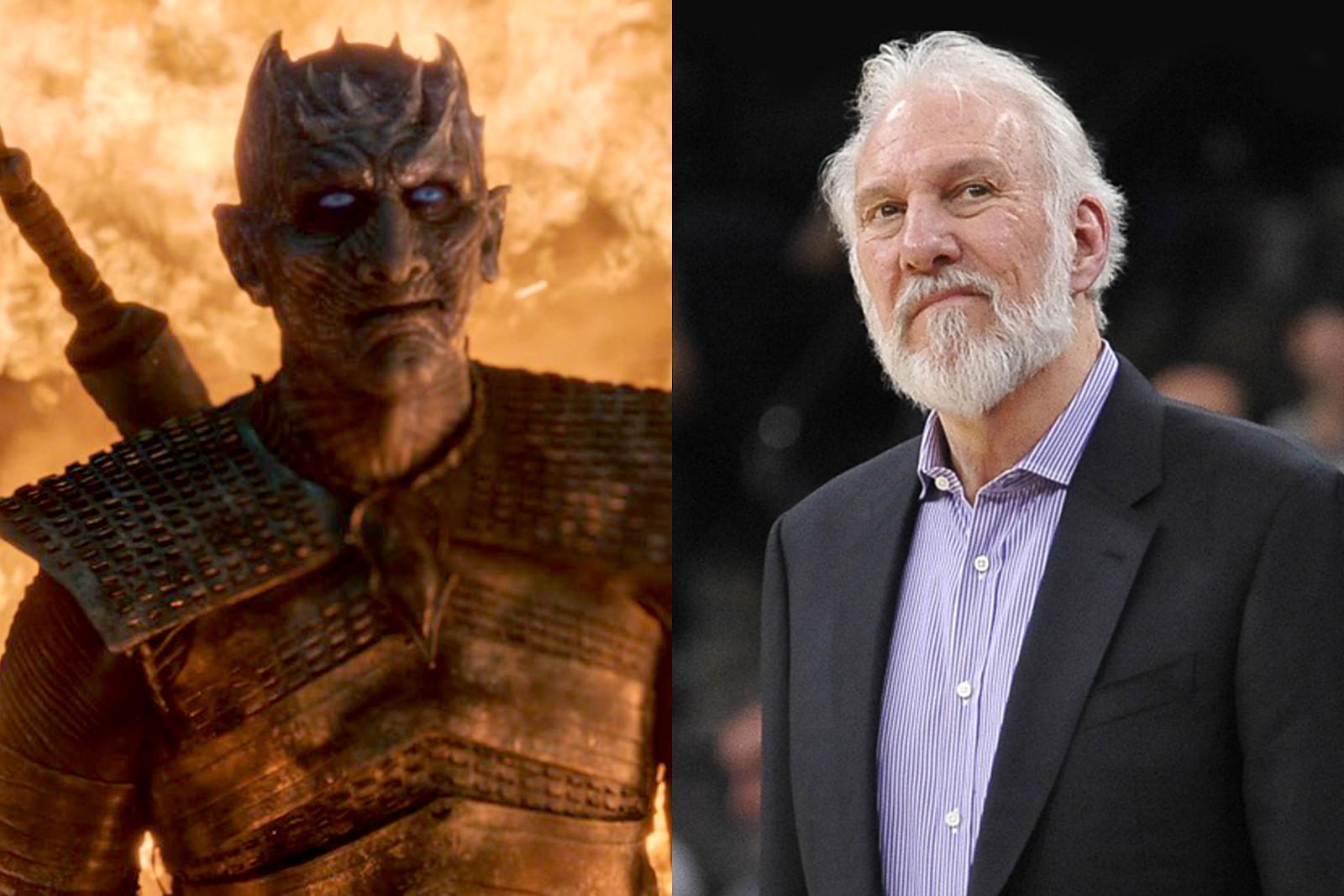 The Night King and Gregg Popovich are figures from different universes. One is a villain dedicated to outmastering foolish mortals vying for sovereignty around him, and the other is a Game of Thrones character. Yet they share many commonalities. Both are leaders. Popovich coaches the San Antonio Spurs, and the Night King commands the army of the dead. Neither cares for small talk. Pop owns a winery; the Night King also appreciates things that have sat in a cold, dark basement for years on end. They rarely smile, but tell me those mugs aren’t similar when they do: