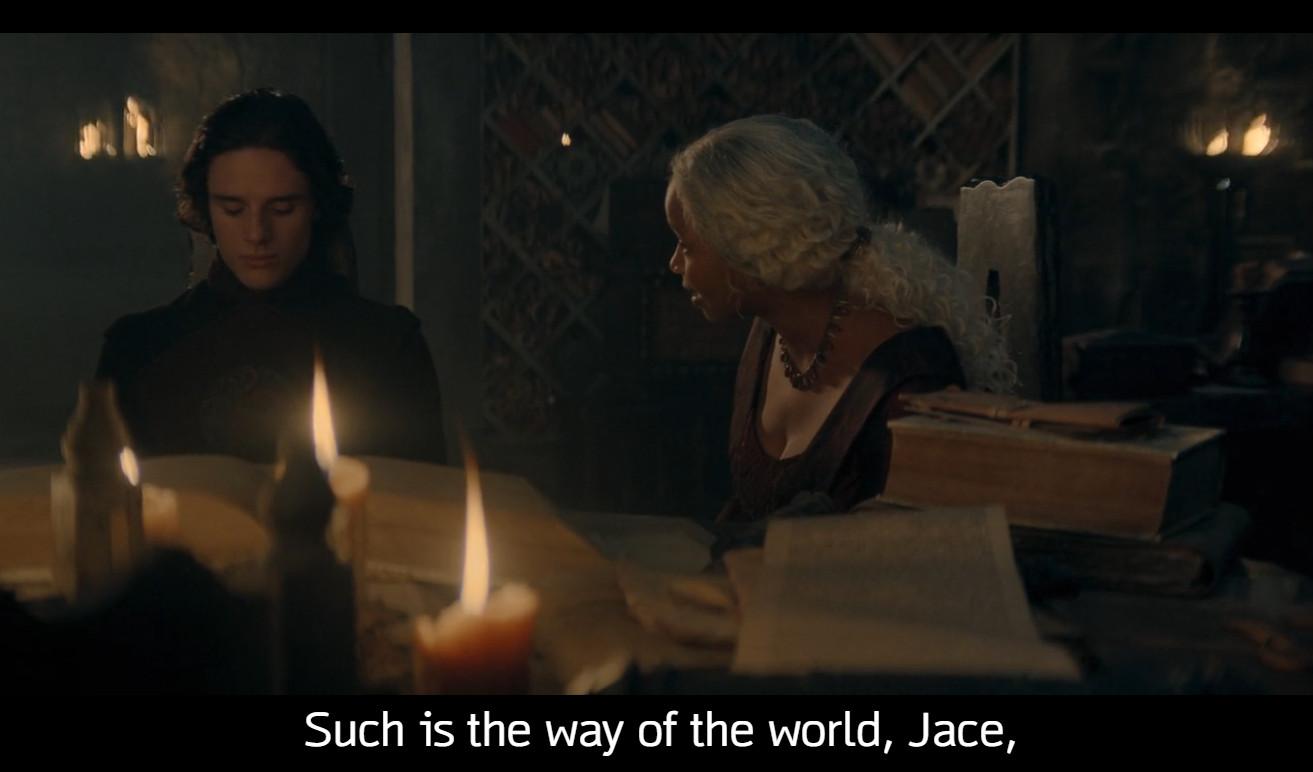 And yes, I saw the final imagery of Alicent out in the big open sky and Rhaenyra trapped among her scrolls; I read the interviews that said Alicent is finally free. But sister still has a lot to do in the next couple of days. Chop, chop you future kingslayer, you!