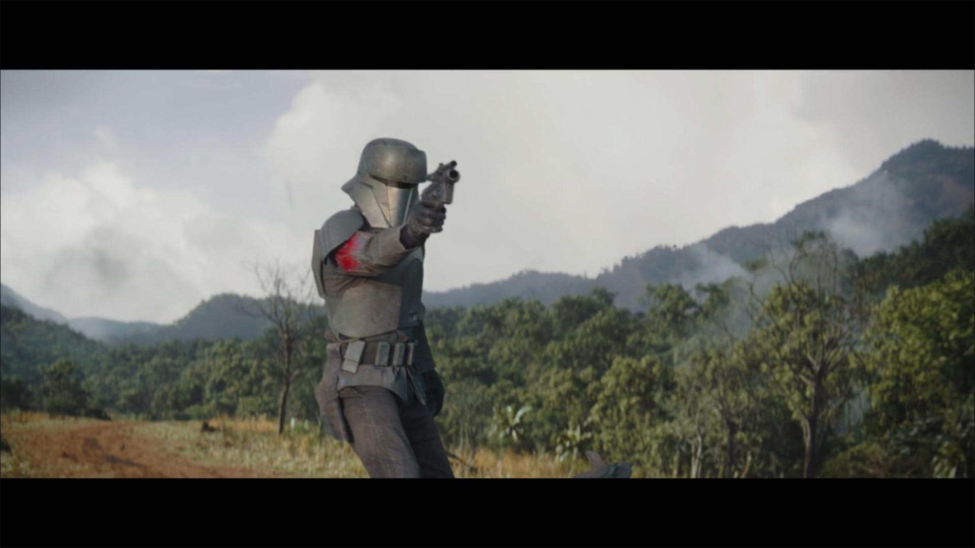 Rhydonium is a dangerous starship fuel featured in The Clone Wars and Rebels and described by munitions specialist Sabine Wren as “one of my oldest and most explosive friends.” Although Fett’s EE-3 original trilogy rifle returned in “The Believer,” the cycler rifle from Tatooine fired the fateful shot that took out the Empire’s base. Mayfeld covers for Mando by explaining that “his vessel lost pressure in Taanab.” That’s the planet Lando referenced in Return of the Jedi, although the Battle of Taanab that he credited for his hasty promotion to general didn’t involve the Empire. An earlier engagement between the Empire and Rebels took place on Taanab after the Battle of Yavin, which might be the skirmish Mayfeld meant.