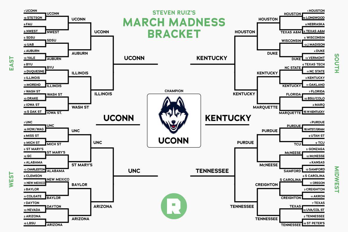 Don’t be afraid to take the chalk in this region. Connecticut is the best team in the country. They have the depth to match Auburn’s 10-man rotation. They have the offense to outscore Illinois. They have the passing to beat Iowa State’s ball-hawking defense. And FAU’s Final Four experience won’t be an advantage over the defending champs.
