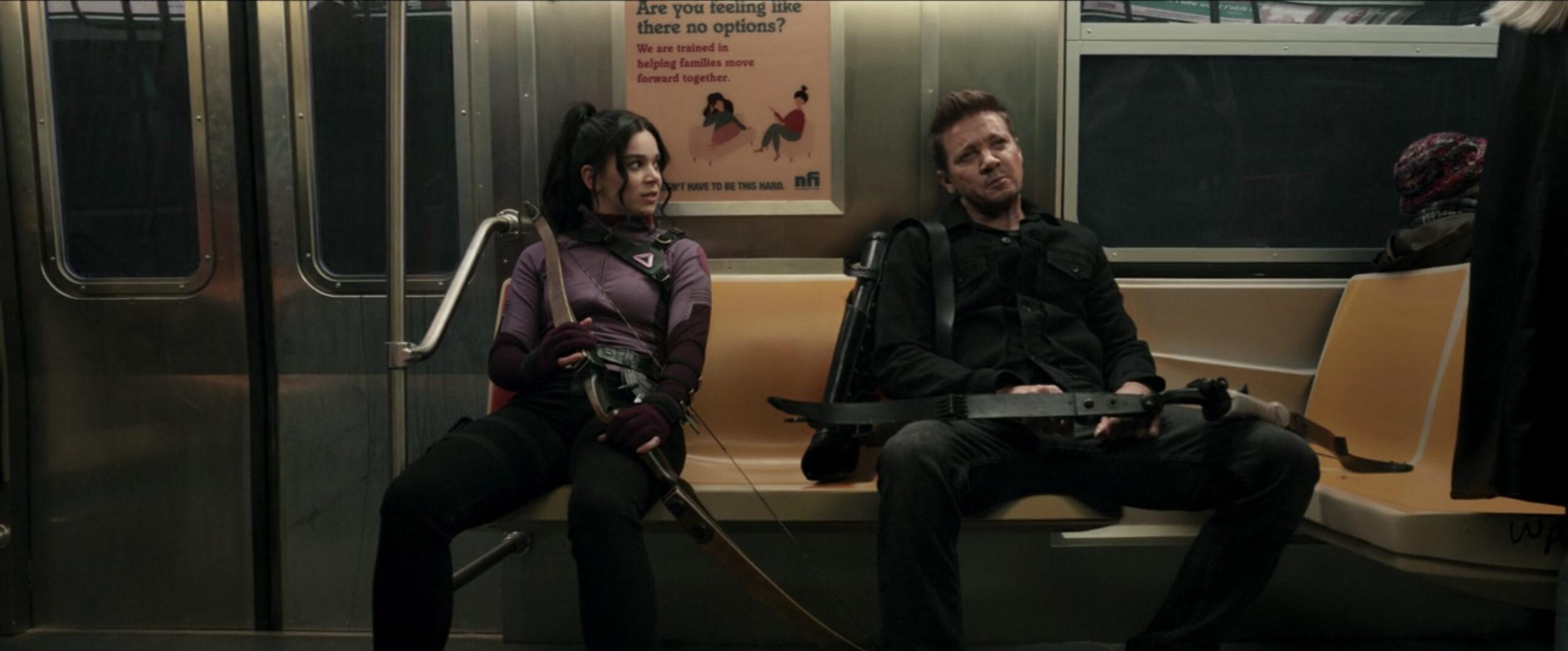 Building off of the foundation that the first two installments of Hawkeye laid surrounding Clint’s physical limitations and the toll that his Avengers career has taken on him, this week’s episode shows how extensive his hearing loss has become after Maya destroys his hearing aid. Without it, Clint is incapable of understanding what Kate is saying to him throughout most of the episode—which he actually seems to prefer, but still—and he requires her assistance to be able to speak to his son over the phone. As Kate mediates this conversation between Clint and young Nathaniel Barton, she’s also provided with a window through which to see the consequences of her actions on him and his family.