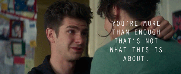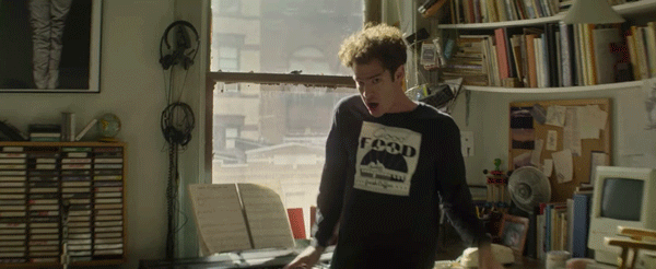 Garfield also makes unusual and unexpected choices in his scenes with both Field and Stone. Those unpredictable, off-kilter moments are a hallmark of all of his performances. In The Amazing Spider-Man 2, he plays one romantic interlude with Stone’s Gwen Stacy from behind a tree trunk.