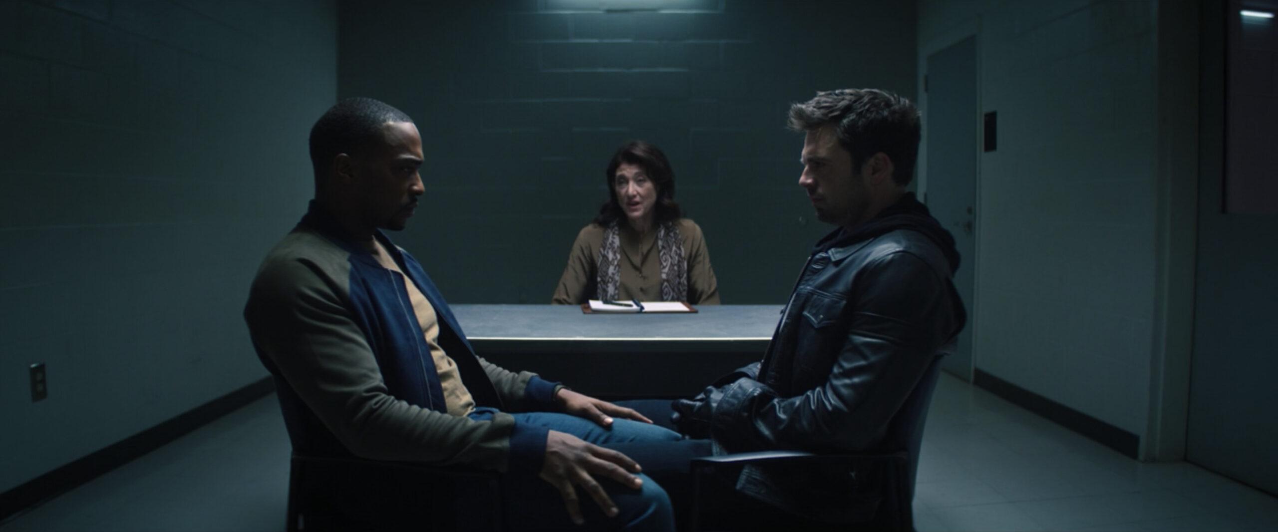 At the police precinct, Sam meets Bucky’s therapist, Dr. Raynor. They’re also met by Captain America himself, as it’s Walker who’s managed to not only arrange for Bucky’s release, but also put an end to his court mandate so he can get back into action. Dr. Raynor has one last session with Bucky before he’s released, and brings Sam along for the ride so the pair can hash out their issues. Between all the bickering, sexual tension, and soul-gazing that follows, the main takeaway of the session comes when Bucky angrily brings up Cap’s shield again. “That shield, that is … that is everything [Steve] stood for,” Bucky tells Sam. “That is his legacy. He gave you that shield, and you threw it away like it was nothing. So maybe he was wrong about you. And if he was wrong about you, then he was wrong about me.”