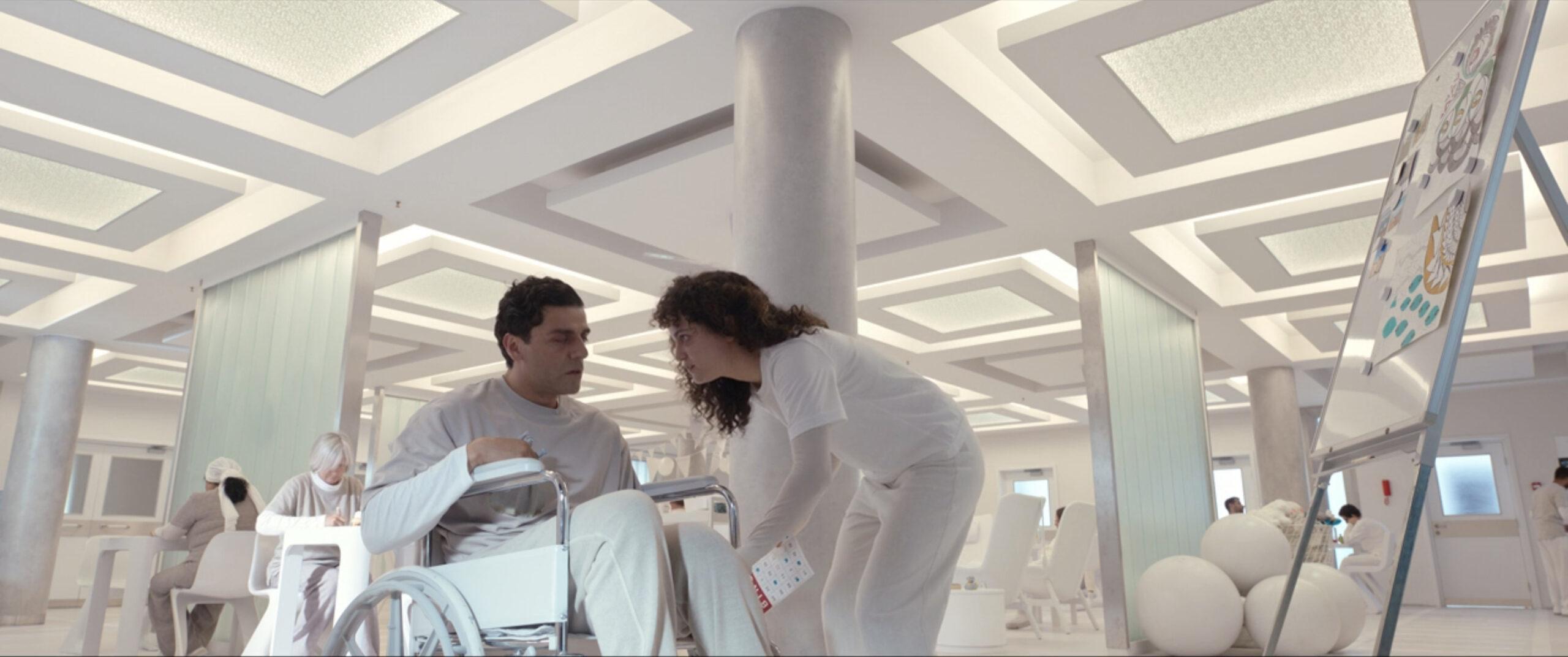 The eye-opening conversation occurs at a comically bad time, as Layla allows her justifiable rage to blind her to the fact that Harrow and his armed followers are approaching. Marc manages to take down a few of Harrow’s followers using the great Macedonian king’s ax, but two shots to Marc’s chest drops him and he plunges into the tomb’s standing water, entering a dreamlike state that appears to signify his transition to the afterlife. However, Marc soon wakes up in a psychiatric hospital, surrounded by patients familiar to Marc or Steven—including Layla and Steven’s former boss, Donna—and orderlies who look like Harrow or Anton Mogart’s henchmen. Objects and characters we’ve seen throughout the series also appear in the hospital—from cupcakes and Steven’s pet goldfish to Egyptian artifacts and a drawing of a Khonshu pigeon. What’s more, Marc finds himself tied to a wheelchair by the ankle, reminiscent of Steven’s system of strapping himself to his bed every night. All of which raises the question: Is this really happening?