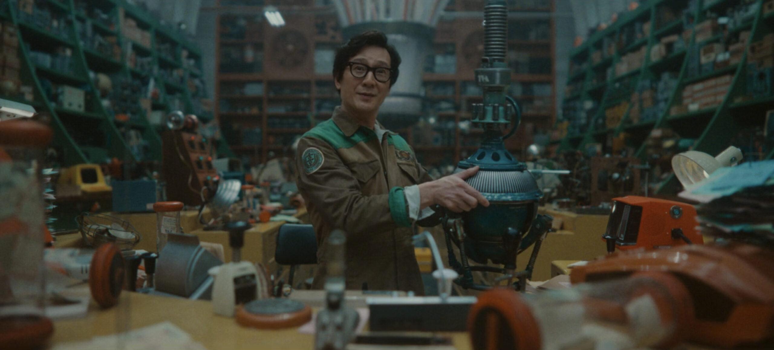 Thanks to Loki’s arrival, Mobius and other higher-ranking members of the TVA learn about the biggest threat the TVA now faces. But given that Loki can hardly stay in the same place for more than a few minutes at a time in his current state, Mobius decides to bring him down to the repairs and advancement department to handle that more immediate issue. There, they meet the episode’s eponymous Ouroboros (Ke Huy Quan), or O.B. for short. O.B., the TVA’s tech expert, runs the entire department on his own and even wrote the guidebook that serves as something of a TVA bible.