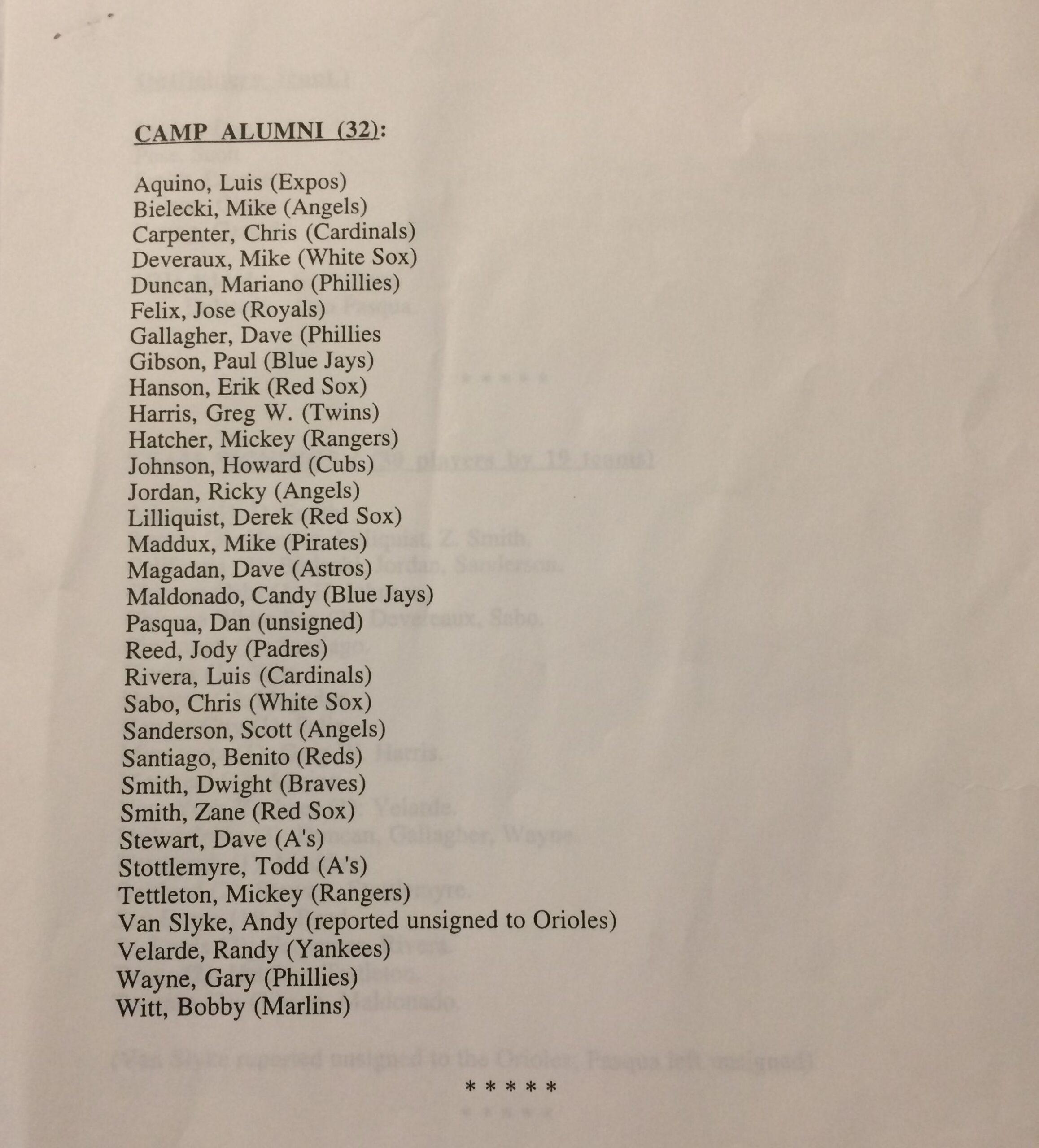 Last Friday, Yahoo Sports columnist Jeff Passan reported that a number of players “have discussed the possibility of staging a free agent training camp to mimic their typical spring work.” To most active players (and, perhaps, fans), that concept must sound like a novel solution to an unprecedented problem. But baseball, the Bible, and Battlestar Galactica remind us that most seemingly extraordinary occurrences have happened before. Baseball’s first spring training for free agents took place 23 years ago. And while the still-singular event served its planned purpose, those who were there hope it won’t have to happen again.