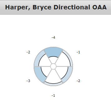It’s difficult to pinpoint precisely why Harper struggled so much. According to MLBAM’s directional outs above average, Harper rated seven outs below average going back on balls and five outs below average coming in. In every direction, his range was a net negative.