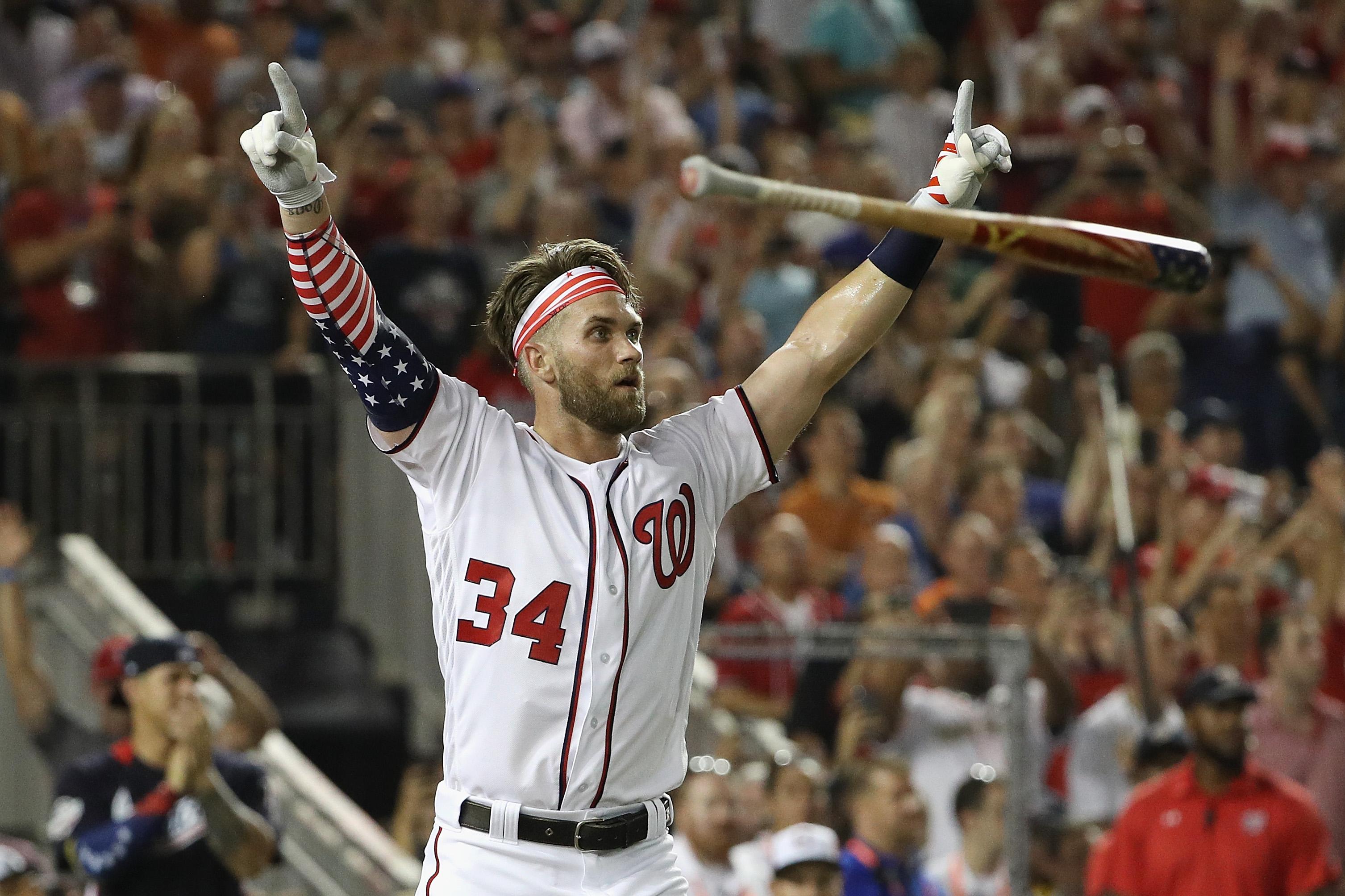 The Home Run Derby is a standing sort of affair, at least for just about everyone in any part of the field that might fairly be considered the outfield, plus some parts that might not. But by the end of a hot Washington night, more than a few of those leaning together in mashed-tater range had sunk back down. But each time Harper approached the plate, they stood again. When he tied Schwarber’s 18-home-run mark with a second to spare in the finals, Nats Park shook.