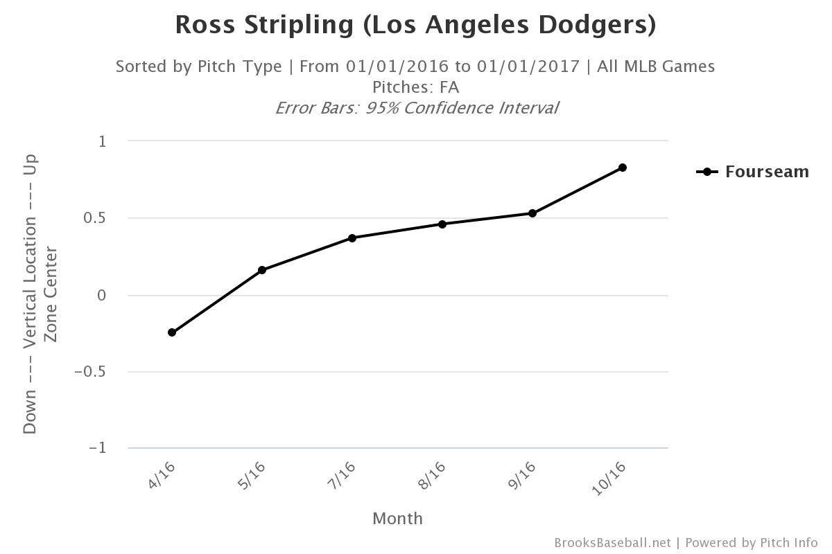 Even current major league pitchers had to learn on the job long after draft day. Take 29-year-old Dodgers swingman Ross Stripling. Stripling, who was drafted by the Dodgers in the fifth round in 2012, doesn’t throw hard; his fastball sits about 91, below average for a right-hander. As a rookie in 2016, he started the season in the big-league rotation but scuffled to a 4.85 ERA through eight starts. To give him a break and conserve his innings, the team sent him to extended spring training in late May for more than a month.