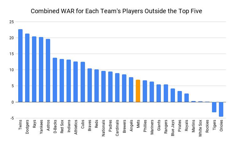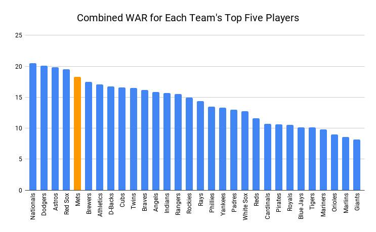 After those first five, though, all the other Mets have combined for just 7.0 WAR; that ranks 18th, which is the lowest “everyone else” placement for a team in the top 10 in “star power” rank.