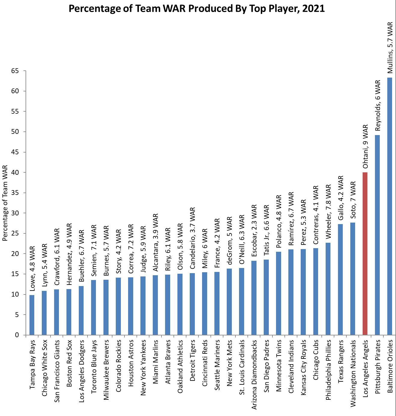 40.0: The percentage of 2021 Angels WAR produced by Ohtani