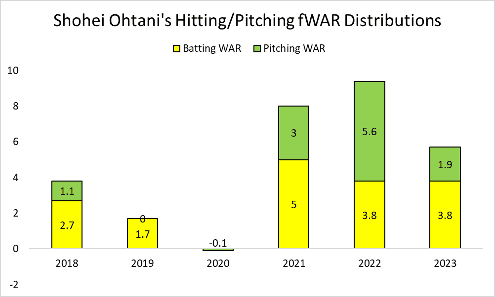 Ohtani’s Pitching/Non-Pitching Offensive Splits