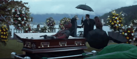 The actual stuff we do see looks like a ton of fun, from Deadpool popping out of a casket at a funeral to Deadpool throwing a chainsaw in the air.
