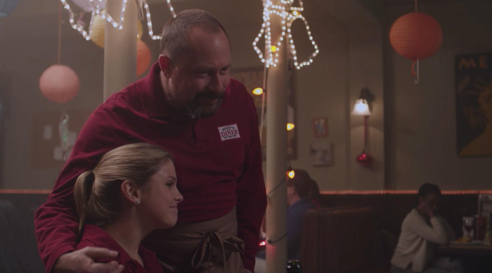We didn’t get to see much of Amber’s dad Rudy (Daniel Fathers) in the first movie, since he stayed in New York City operating his diner, which is called Rudy’s Diner, since Rudy is a very creative guy. In The Royal Wedding, though, Rudy tags along with his daughter—although, Royal Wedding Rudy might be an imposter posing as Amber’s father. Here’s what Rudy looked like in A Christmas Prince: