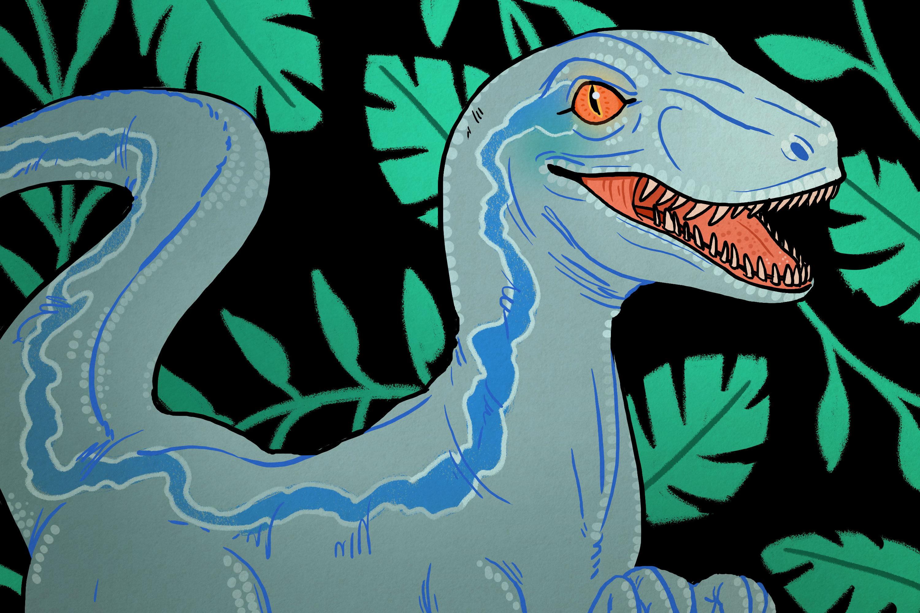 Which brings us to this weekend’s release of Jurassic World: Fallen Kingdom, a movie that blows up the dino-island with an active volcano—THE PARK IS GONE—and brings the action to a gothic mansion and a world where auctioneers are selling dinosaurs as weapons on the black market. While all the other raptors have died, Blue is still alive, and it doesn’t take much convincing to get Owen to rescue Blue from the island before the volcano erupts; such is their bond. Fallen Kingdom takes the raptor love even further, though, by turning Blue into a straight-up hero.