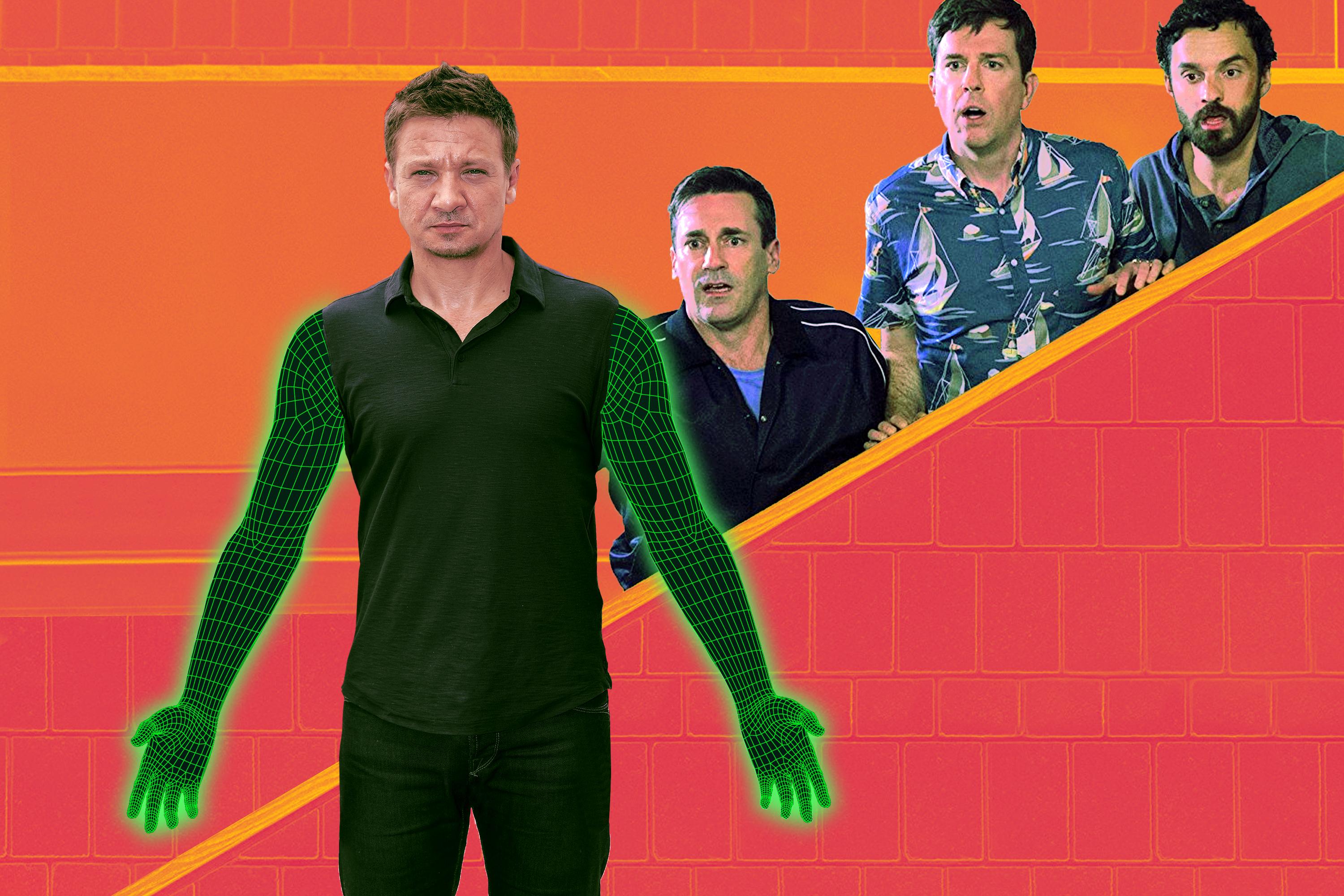 Obviously, if Renner’s arms are doing something spectacular—like draping Jon Hamm in a blanket to avoid a tag—they are probably doing so through the magic of CGI. But if he’s wearing a leather jacket, or hiding his arms behind his back in the middle of the woods, that doesn’t necessarily mean the arms are CGI.