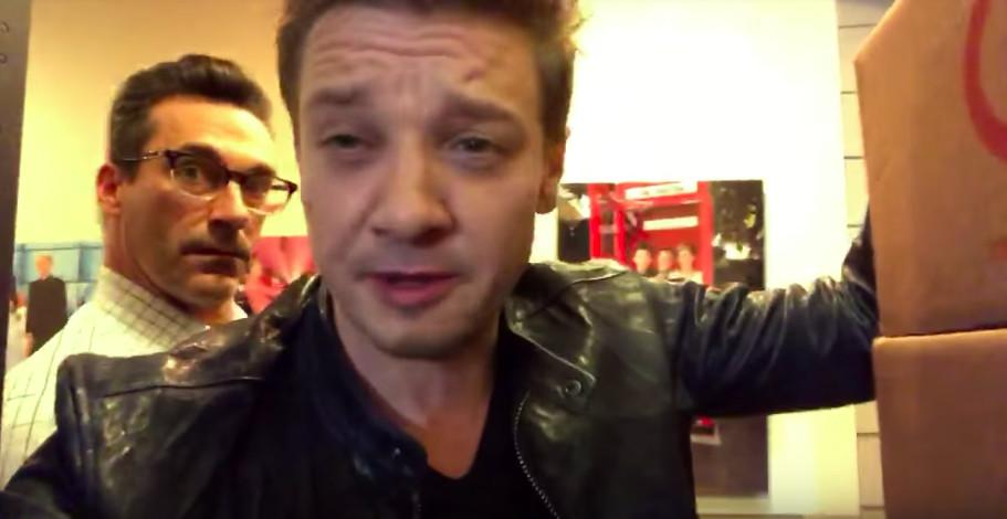 First of all, as Hamm rightly points out, Renner has played a superhero in a major action movie franchise (Hawkeye in the Marvel Cinematic Universe, in case you forgot, which maybe you did) for nearly a decade, but the movie he actually gets seriously injured filming is … about people tagging other people? Seriously?