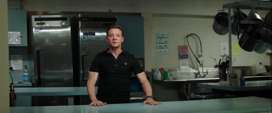 My best guess is that this quick little promotional video was recorded fairly recently, giving Renner plenty of time to heal his normal human arms, which can once again hold a camera and casually lean on some cardboard boxes.