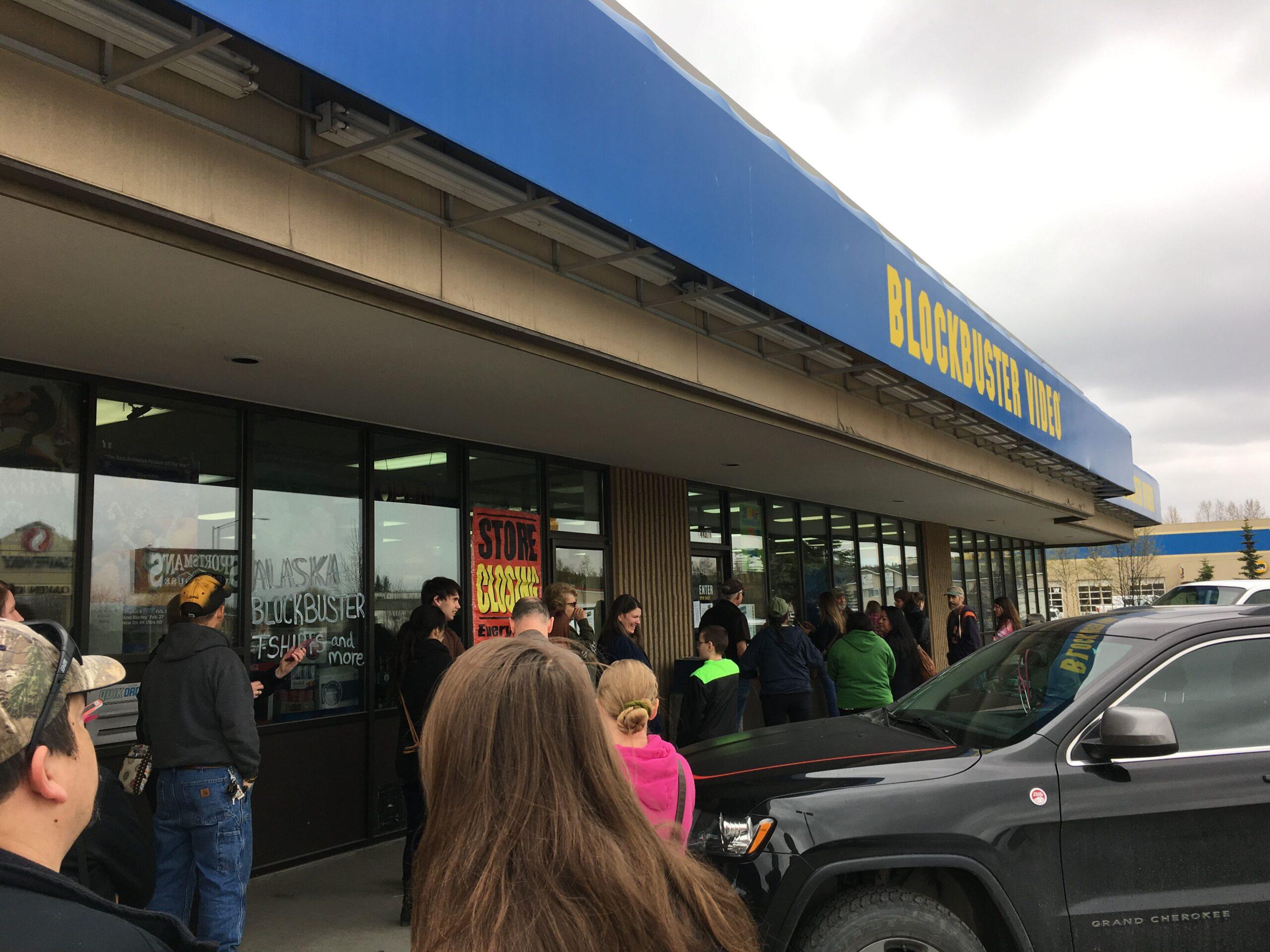 Justin Trickel unlocked the store at noon. It was Tuesday, May 15, and for a while, there was no one out there in the rain. Just the parking lot, and the traffic beyond the ticket-shaped sign, and the view to the Safeway, and the McDonald’s, and the still Ferris wheel, and the occasional grumble of a hated RV. At 11:43, a line began to take shape in front of the door, seven people sort of unsure of themselves, wondering whether it was real, looking forlorn, muttering to each other about how they heard — from the Blockbuster Alaska Facebook post, or a neighbor’s phone call, or the local paper, the Peninsula Clarion, which ran a story about Blockbuster closing on the front page. And then a few more people, and then there were around 50, and then any of the employees inside who had prepped the merchandise started wondering how they all were going to fit when that number doubled.