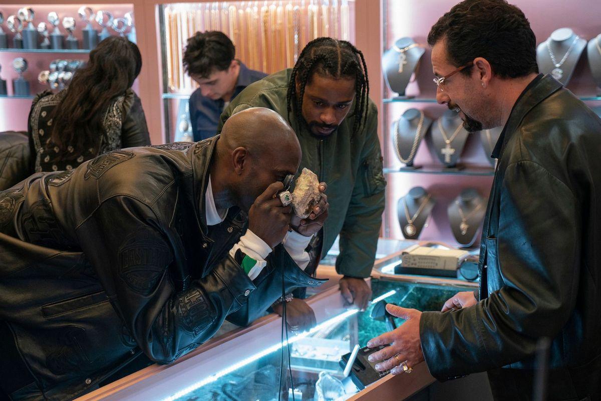 However, in Gems, Howard’s existential anxiety revolves not around the Knicks but rather the Boston Celtics. Garnett costars as a younger version of himself in the film, which focuses on Boston’s 2011-12 Eastern Conference semifinal against the Philadelphia 76ers. While visiting Howie’s shop early on in the playoff series, KG becomes obsessed with a rare black opal that was smuggled in from Ethiopia. The stone grabs hold of the former MVP—it speaks to him—after which Howard, always looking for an excuse to gamble, decides to go all in on backing KG.