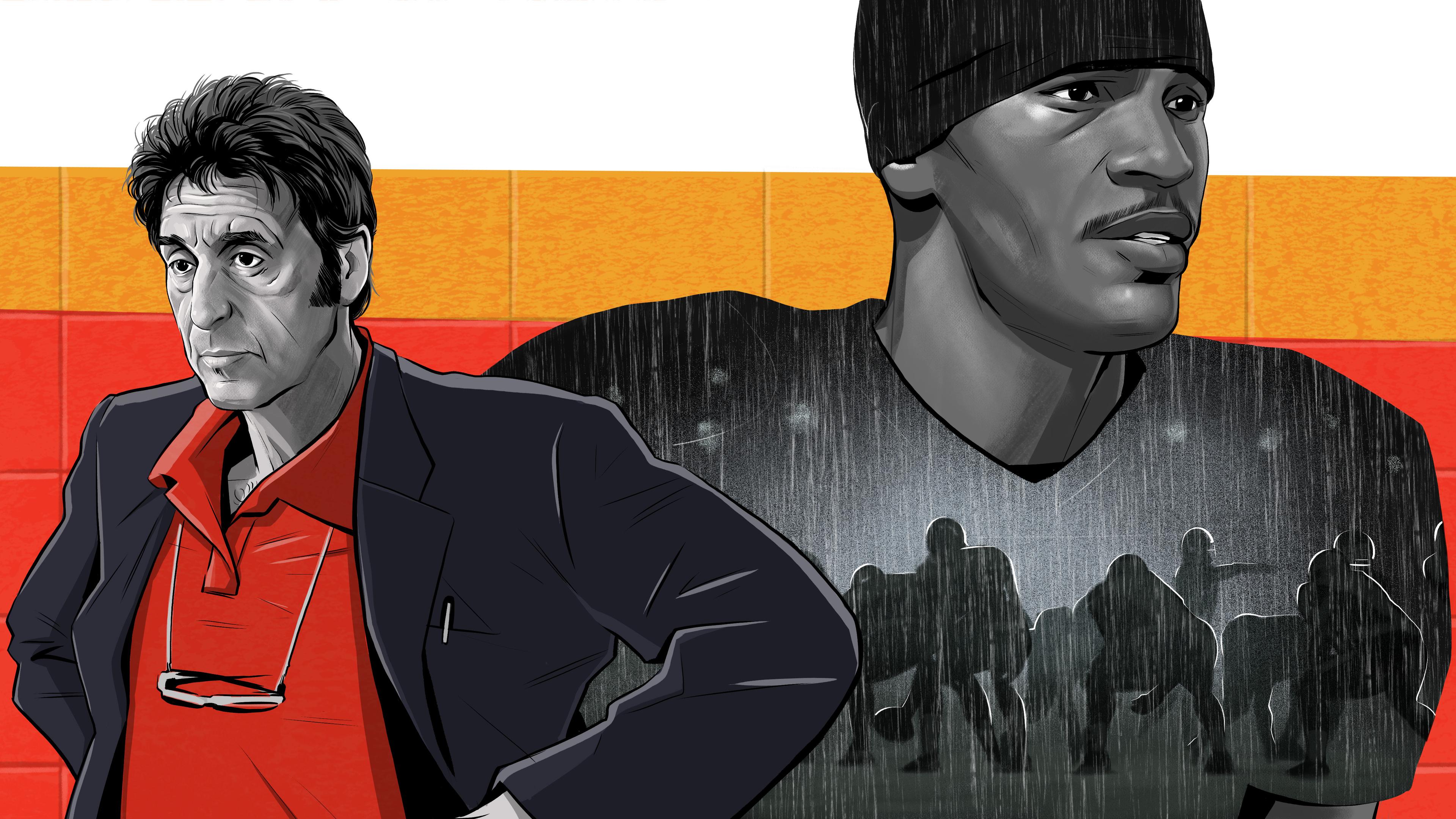 Pacino: When you hear football spoken between people who really know what they’re doing, you can’t understand the language. But it has a sort of lilt to it and it’s extremely poetic. I only got about a third of it. I loved it. I loved learning how they move on the sideline. I didn’t know what I was doing, but I was moving! I liked it. Then you realize the reality of being coach. It’s deep. No vacation.